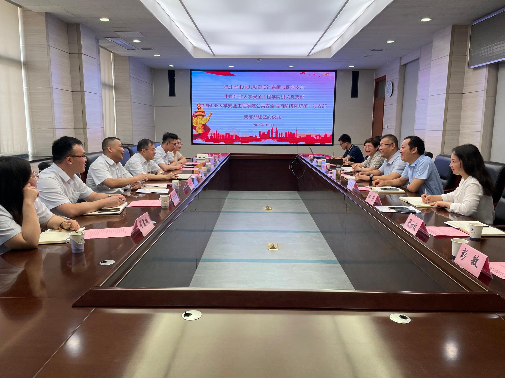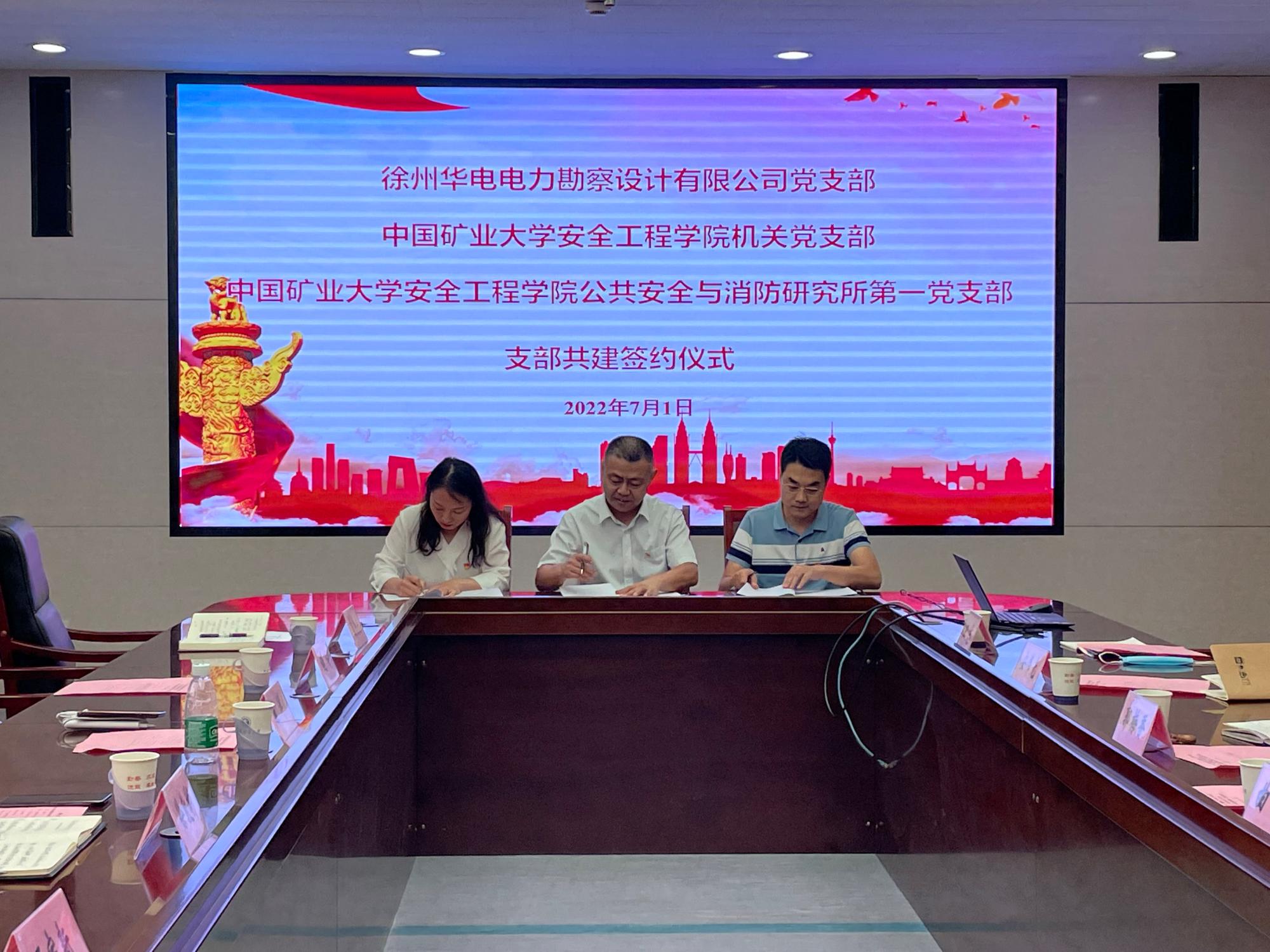 矿业科学中心A412会议室,举行“庆祝中国共产党成立101周年,推进学院党建与事业融合发展”校企党支部结对共建签约仪式。参加结对共建的党支部分别是:徐州华电电力勘察设计有限公司党支部、矿大韩国三级