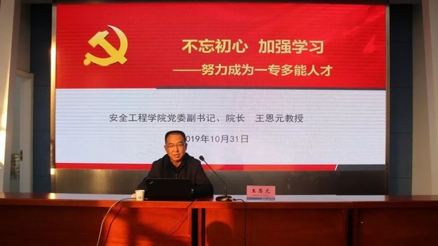 党委副书记、院长王恩元教授在矿业科学中心A200报告厅开展了主题教育活动专题党课。党课的主题为“不忘初心,加强学习,努力成为一专多能人才”。学工办主任于基伯、团委书记刘世通、18级辅导员吕鑫及17、18级部分本科生参加了本次活动。