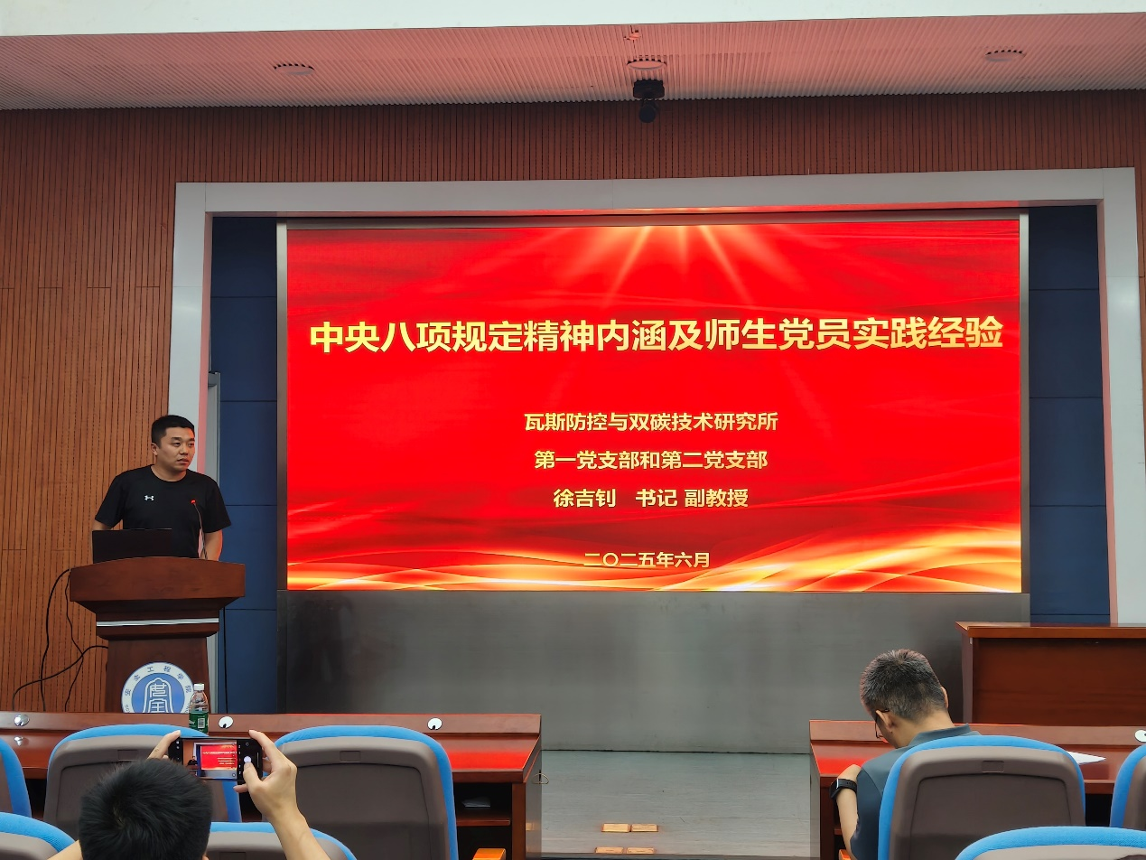 为深入贯彻习近平新时代中国特色社会主义思想,推进中央八项规定精神学习教育,坚定毕业生党员理想信念,6月19日下午,瓦斯防控与双碳技术研究所第一、二党支部于矿业科学中心A200联合召开毕业生党员微党课活动。会议由第二党支部书记徐吉钊同志主持,支部党员参加了此次活动。