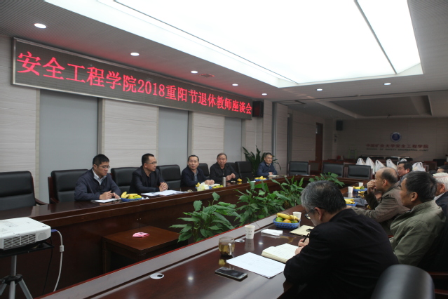 10月17日,是我国传统节日重阳节,学院在矿业科学中心A412举行了2018重阳节退休教师座谈会。院党委书记章毛平、院长王恩元、院党委副书记钱雄、副院长朱晓东、煤矿瓦斯治理国家工程研究中心副主任周劲锋以及院党政办公室、院工会相关负责人出席座谈会。
