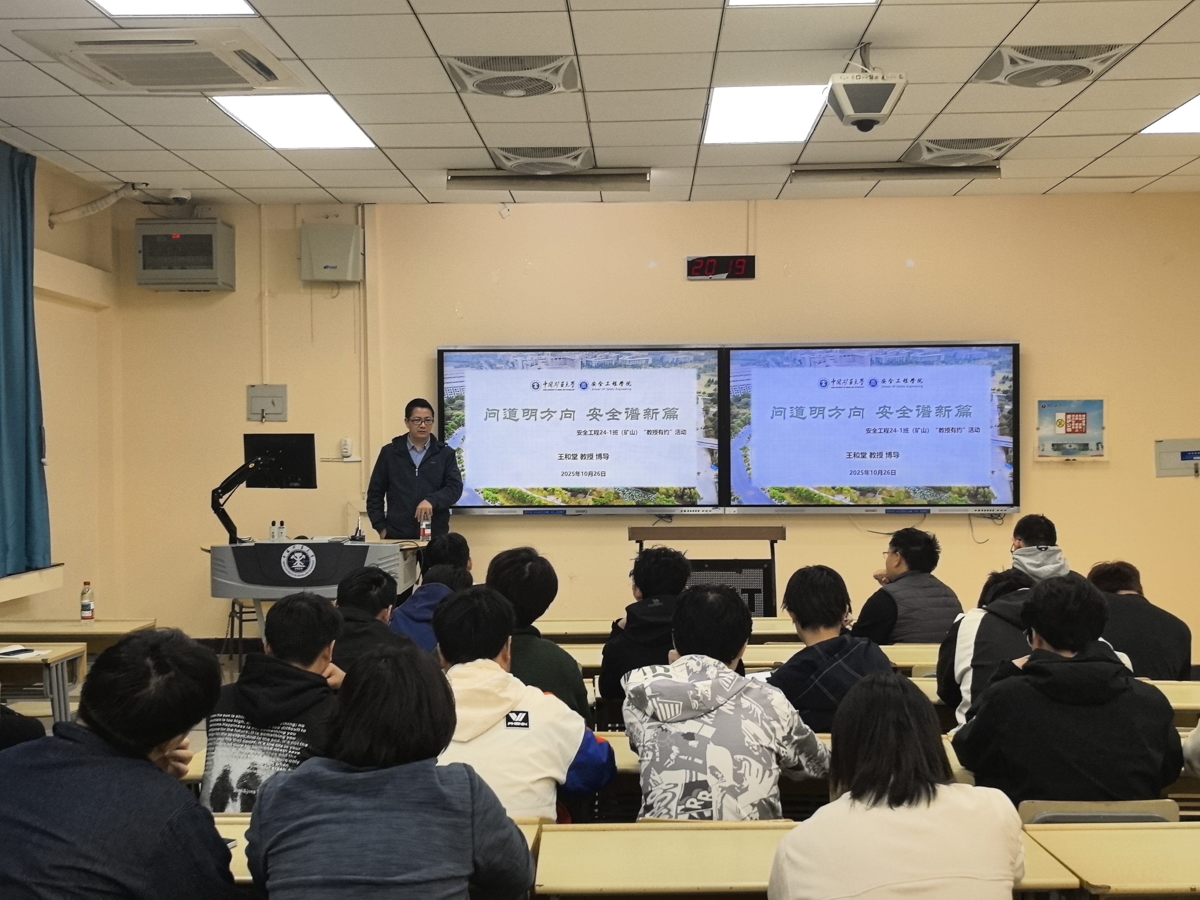 为让同学们在新学期顺利调整身心状态、投入学习生活,加深彼此互动与情感,在融入集体、提升班级凝聚力的同时,明确个人未来方向。10月26日晚,学院在博学楼四号楼B104教室开展“教授有约”活动第一百五十五期“问道明方向,安全谱新篇”安全谱新篇”主题讲座。王和堂教授受邀主讲,安全工程2024-01班(矿山)班主任刘统及全体同学共同参加。
