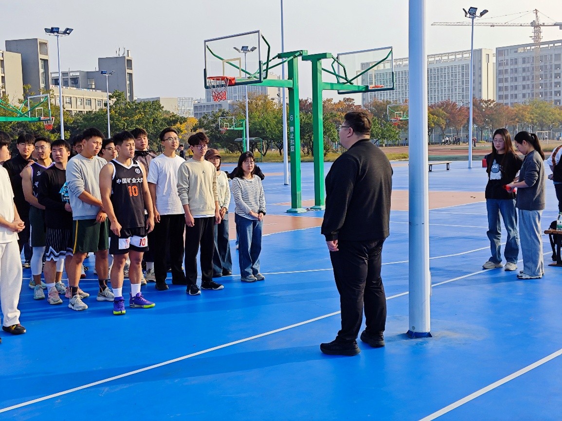 赛前,刘世通老师指出,“安全杯”篮球赛不仅是研究生展示体育风采的平台,更是增进同窗情谊、强化集体凝聚力的重要载体。他鼓励参赛队员发扬“友谊第一,比赛第二”的体育精神,在比赛中展现团结协作、积极进取的风貌。