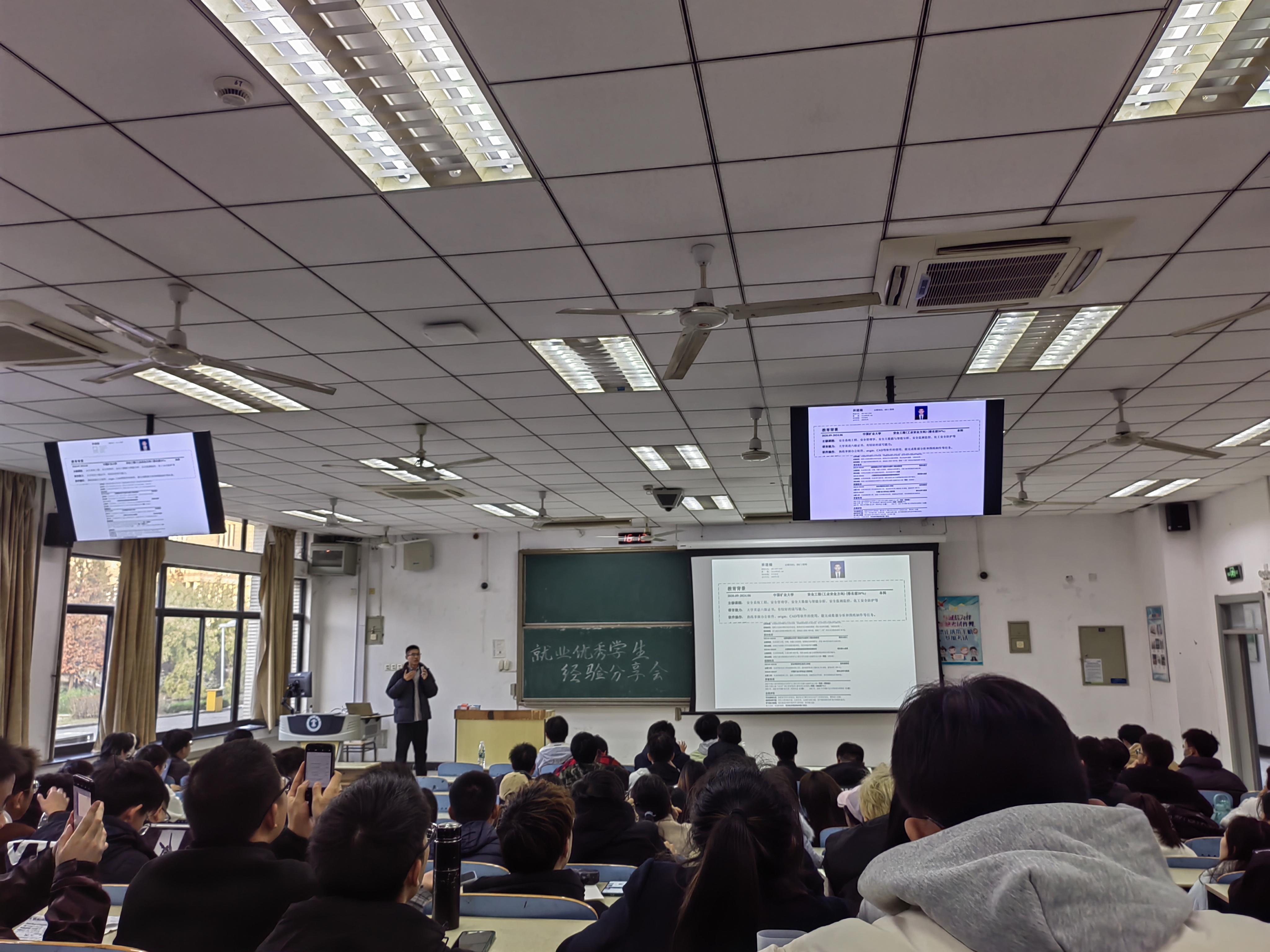 学生党员工作站、本科生第一党支部、本科生第二党支部在博1A-102举办了“就业优秀学生经验分享会”主题讲座。本次活动邀请了就业优秀学生林建楠、汪官腾、金心怡、徐世龙进行主讲,韩国三级