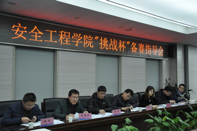 于矿业科学中心A412召开“挑战杯”学术科技作品备赛指导会。安全学院党委副书记钱雄、校团委科技创新创业部部长关福远、安全学院时国庆、杨威老师以及团委书记孙婷、辅导员刘世通等出席了此次指导会。