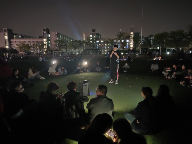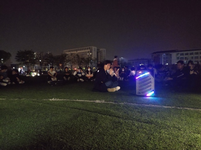 音乐会开始前,负责人王宏阁同学为大家准备好齐全的音响设备和各种零食。晚上7点,音乐会正式开始,同学们自行围坐在音响旁,一位同学为大家带来的萨克斯独奏《莫斯科郊外的晚上》使现场的气氛逐渐活跃起来。孙文洋同学为大家带来一首《白羊》,其他同学也踊跃点歌,更多有才艺的同学来到人群中心一展歌喉。在他们的带动下,大家的情绪也越发高涨,自发打开手机手电筒随着音乐挥舞着。最后,在曲伟文同学的一首吉他弹唱中,音乐会来到了尾声,同学们不舍地离开了运动场。整场音乐会精彩纷呈,同学们演唱的歌曲曲风与时代各异,为本次音乐会带来了不一样的色彩。