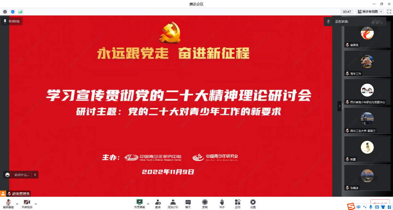 为加深对党的二十大精神的理解,11月9日下午,中国青少年研究中心和中国青少年研究会联合举办了“学习宣传贯彻党的二十大精神理论研讨会”活动,韩国三级