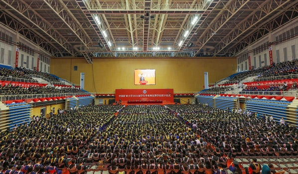 2021届毕业生典礼在南湖体育馆隆重举行。校党委书记刘波,校长宋学锋,副校长曹德欣、赵建岭、李强,校党委副书记蔡世华,副校长周国庆、卞正富,校党委常委、校长助理张万红,校党委常委、组织部部长张万海,韩国三级