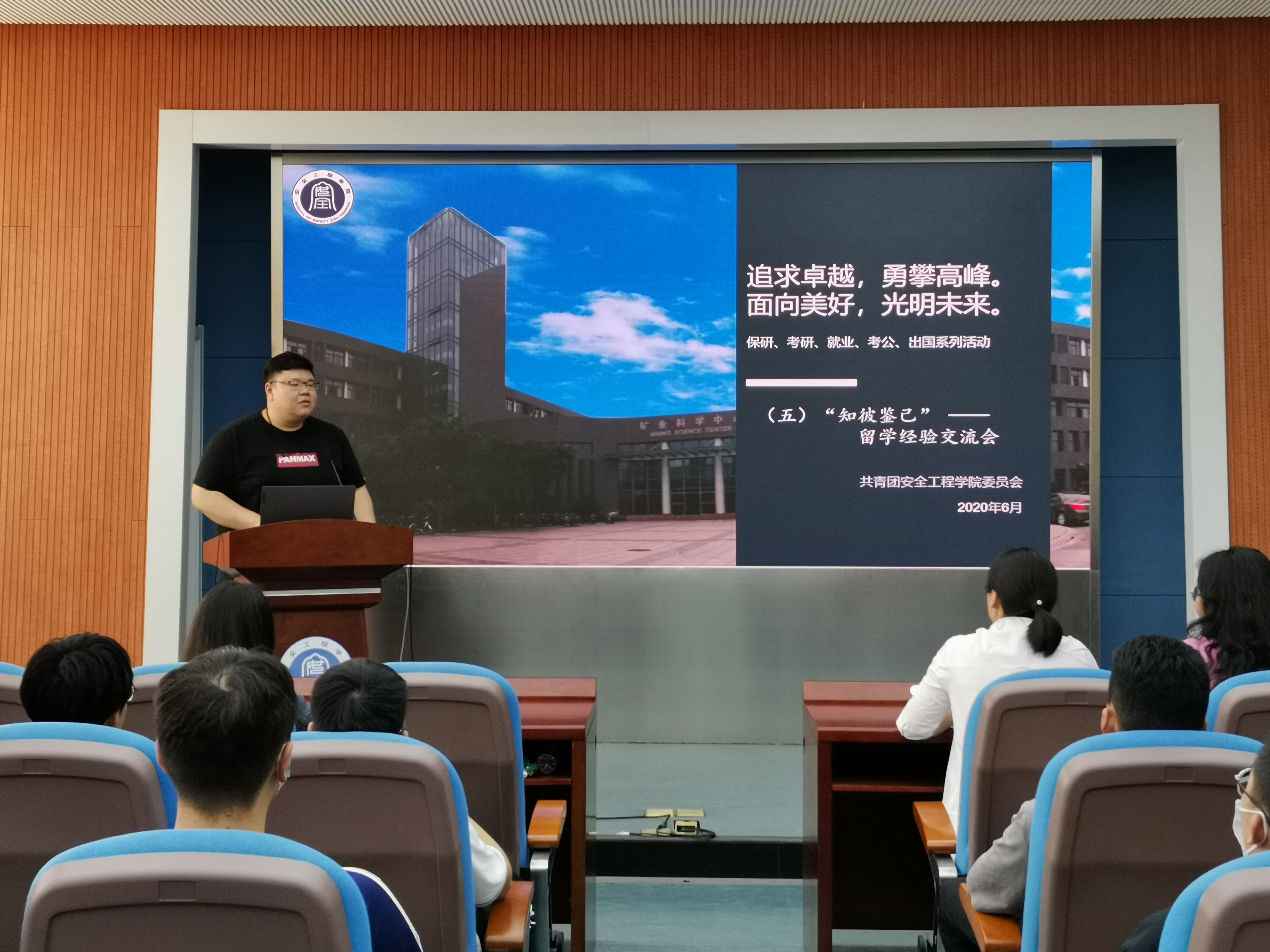 在矿科A200举办出国交流经验会。安全学院团委书记刘世通出席本次交流会。