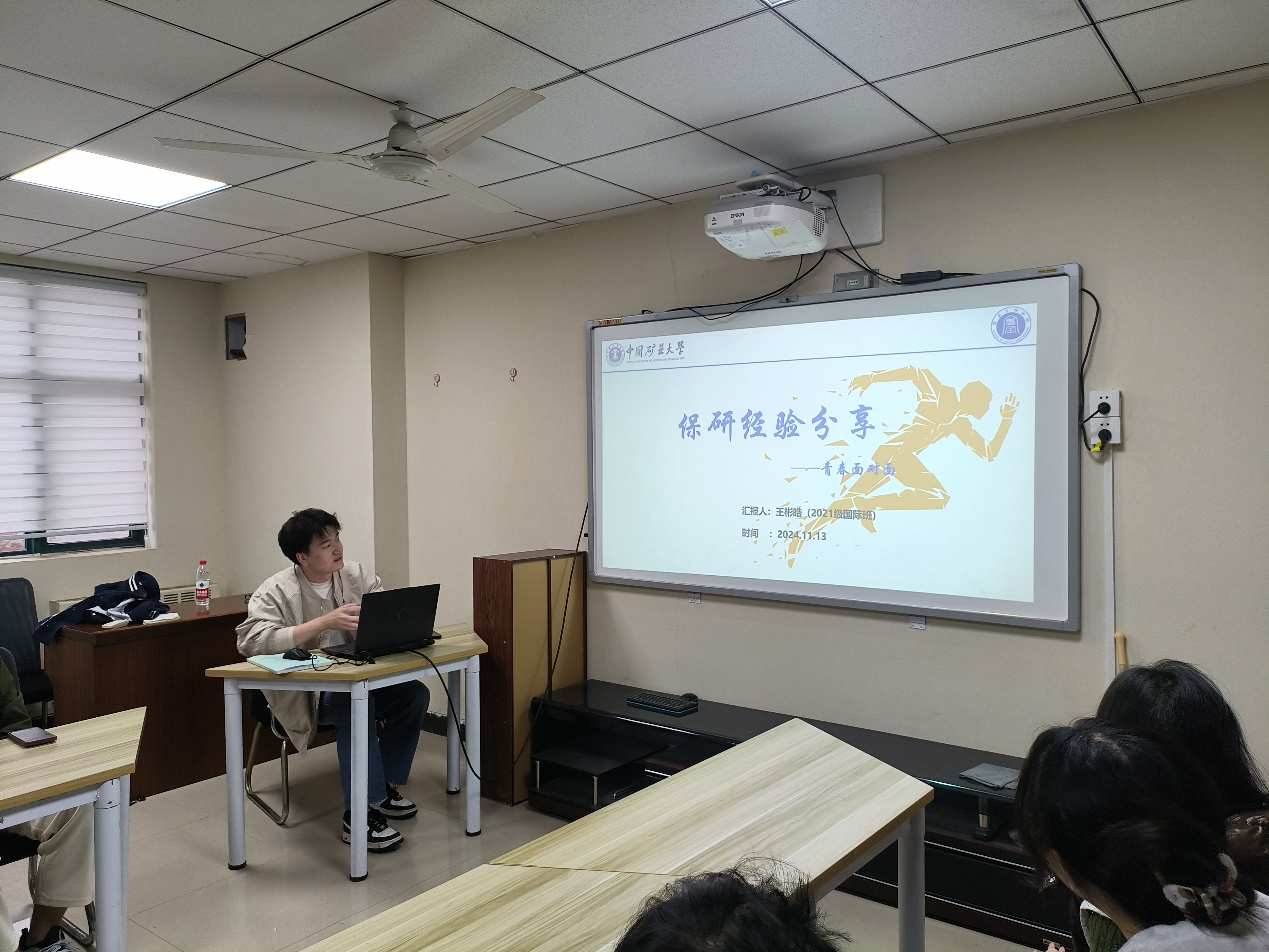 学生党员工作站于力行轩开展保研经验分享会。叶雨萱、王彬皓同学担任主讲,发展对象以及本科生第二党支部预备党员参加本次活动。
