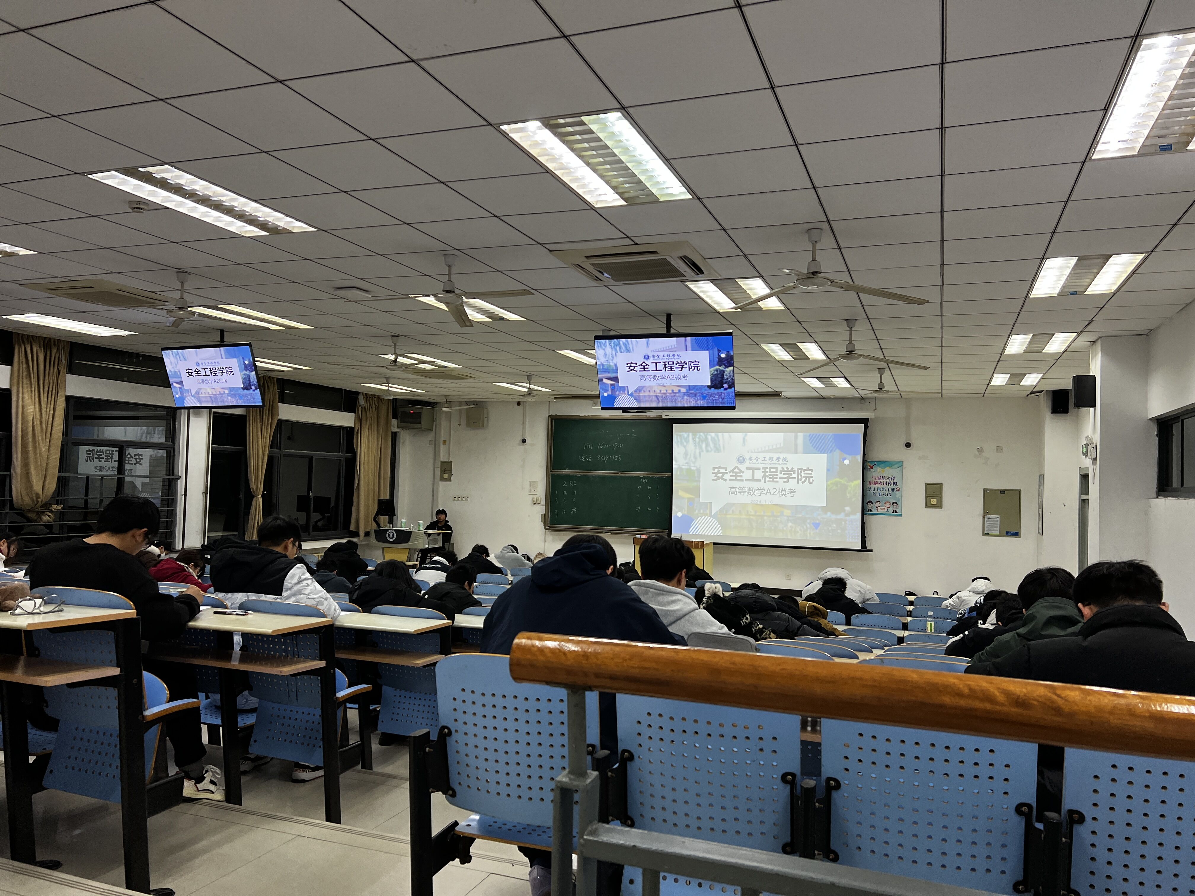 模拟考试现场严格遵循高数A2正式考试的流程和要求,全体同学积极配合监考人员工作,沉着冷静,诚实应考,审题认真,书写规范,力求以自己的最佳状态完成作答,充分展现自己的复习成果。考试结束后,同学们严格遵守考场纪律,待监考人员将试卷收回并清点完成后有序退场。根据本次模拟考试的结果,同学们对自己高数A2知识点上的漏洞和疑问有了更清晰的了解。在答疑活动中,同学们在诸位高年级学生的帮助下将难题逐一击破解决,完善了自己的知识体系,为冲刺考试打下坚实的基础。