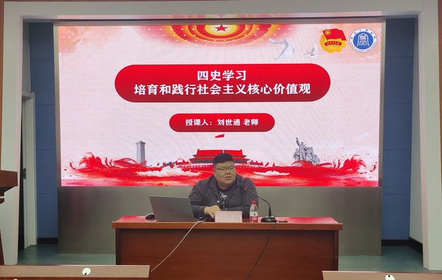 刘世通老师以“四史是什么”引入主题,重点讲述了学习党史的意义。刘世通老师强调:我们应该提升自己的格局,明白我们还有很长的路要走,我们要学好党史,历史中蕴含非常多的智慧。要明白“读书明理,读史明智”的深刻内涵。在践行社会主义核心价值观层面,刘世通老师教导同学们要谨记历史,有理想、有信念、多读书、学好历史,在自己的学习生活中寻找指引自己勇往直前的力量,坚决践行社会主义核心价值观。