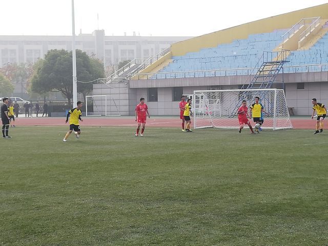 比赛开始前,安全队员们分析了矿业学院历来的比赛风格,制定了相应战术并做了一些热身活动。中午12时30分,在主裁判一声哨响下,比赛正式开始。矿业队员迅速进入比赛状态,牢牢地把控住中场,并向安全学院球门屡次发起进攻。约十分钟后,安全队员防守时不慎手球,这让矿业学院获得了一次点球机会,但是守门员马禧缘奋力扑出了足球,矿业学院错失良机。此后安全队员们开始反击,获得了多次角球机会,比赛开始进入胶着状态。上半场结束,双方互交白卷。短暂的休息过后,比赛进入到下半场,在之后的二十分钟,比赛持续紧张,双方仍然没有取得进球。第五十四分钟,安全队员宣鹏抓住矿院后卫的失误,于前场成功断球,摆脱两名后卫后起脚射门,刁钻的射球角度让矿院守门员措手不及,足球直接落入网中,安全学院取得了一球的领先优势。这一球让比赛进入了白热化阶段,矿业学院并没有因一球失利变得消极,而是奋起反攻,在补时阶段一次门前混战中,矿业学院队员将球蹭入球门,比赛回到了平局。一比一的比分保持到了常规时间的最后,点球大战一触即发。五轮点球过后,双方互进三球,这使得点球延长到了第六轮。先罚球的矿院队员射门被安全守门员马禧缘扑出,之后安全队员李文昊顶住巨大的压力将球推射打进。这粒进球标志着正常比赛的结束,安全学院足球队以5:4的比分险胜矿业学院足球队。