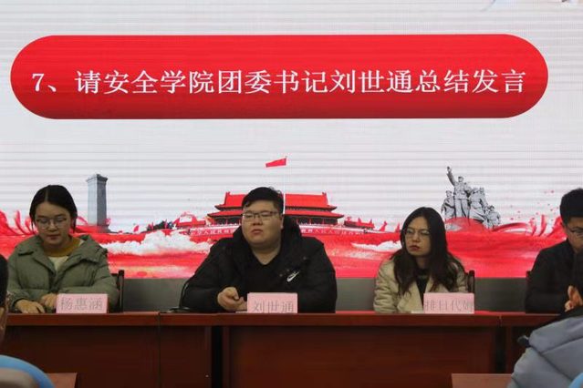20191212日,安全学院2019-2020年青马班开班仪式在矿业科学中心A200顺利举行。出席此次仪式的有安全学院团委书记刘世通、辅导员排日代姆、团委副书记蒋友睿,青马班全体成员参加。