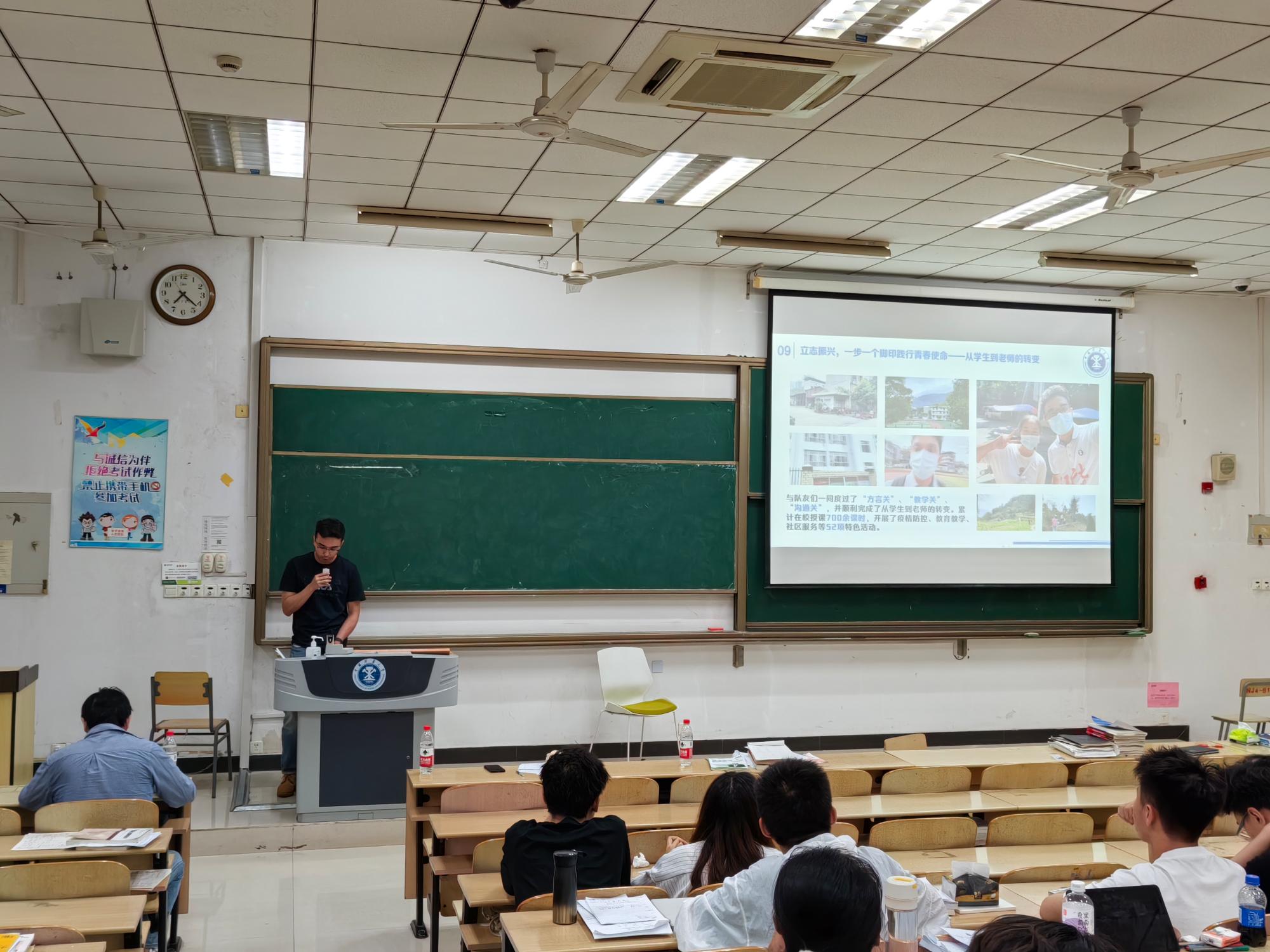 活动伊始,刘育伟同学从学习溯源、书海荡漾、科创略谈和协作之要四个方面详细展开讲解。课堂学习要利用好学校提供资源和课外学习可以学习优质的网络课程;在阅读方面,他强调同学们应读万卷书,才可以行万里路,在书海中找到自己的寻求的答案;在科研竞赛方面,刘育伟向同学们列举了他参与竞赛的经历,希望同学们勇于投身科研,努力提升专业能力;最后,刘育伟同学号召大家积极投入团队合作中,向他人学习,不断地提升自己。讲述期间,刘育伟同学积极和场下同学们互动,结合具体问题,向同学们解答疑惑。艾克以“火热青春,放飞梦想”为主题展开本次宣讲,艾克简要介绍了自身履历,讲述了自己从一名“后进生”,经过学业学习、志愿服务、学生工作等方面的历练,一步步成长发展的历程。他着重强调信念坚定,一板一眼做事是提升自身能力的基石。身为少数民族的一员,他格外留意少数民族同学的生活和学习状况,他坚信“我们要像石榴籽一样紧紧团结在一起”,积极举办相关活动,促进文化交融。怀着从西部来到西部去的初衷,艾克参加了支教活动,他向与会同学展示了支教过程中的照片,讲述了他在西部家访的故事和心得感悟,鼓励同学们积极投身于社会实践,提升价值感和获得感。