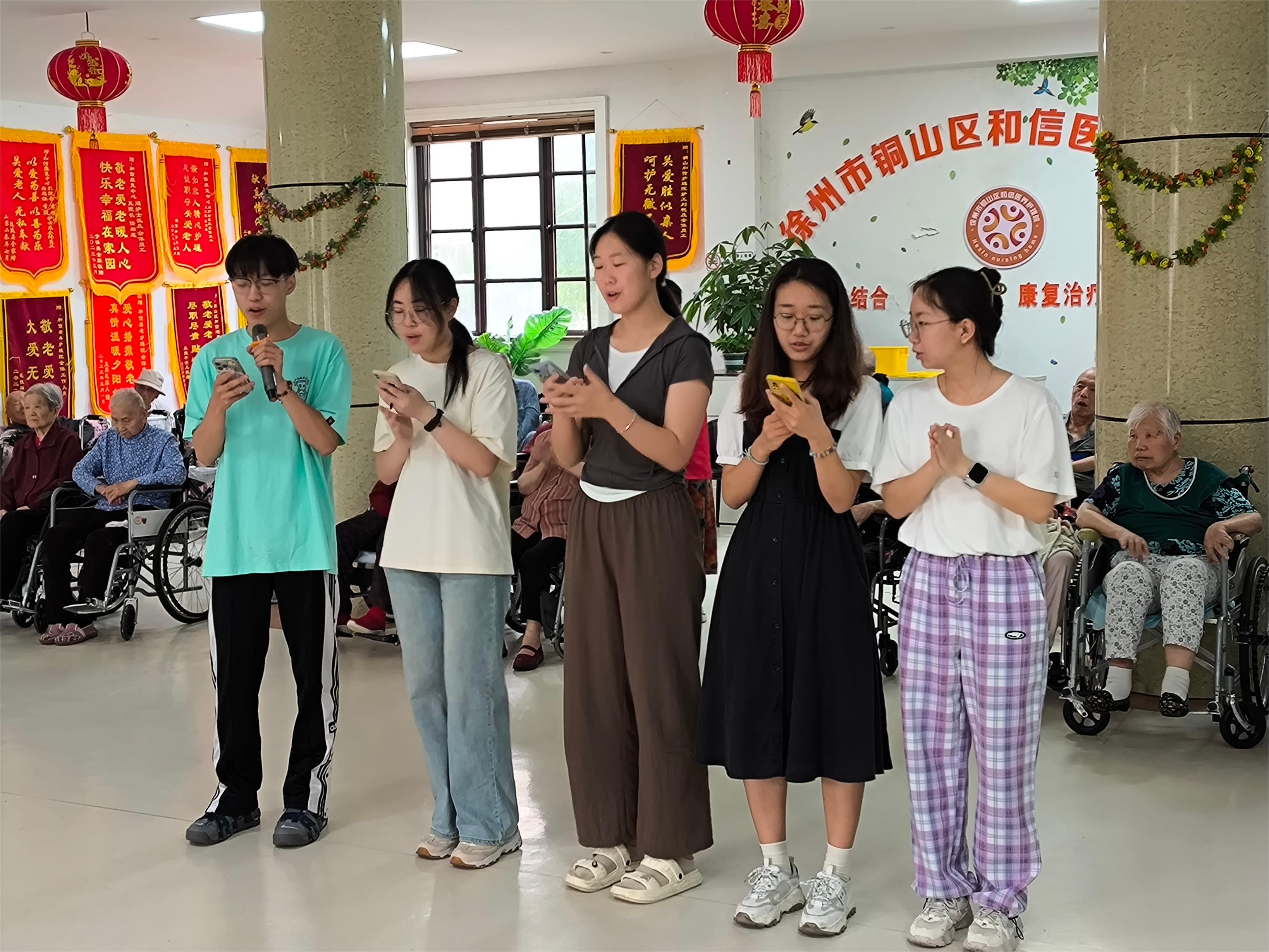 活动期间,同学们怀揣着温暖与关怀走进了和信敬老院。老人们看到同学们的到来,脸上也洋溢起幸福的笑容。随后,同学们与老人聊天、解闷,并带领老人们做一些简单有趣的小游戏,在确保安全的情况下,帮助老人活动身体。最后,同学们进行文艺表演,带动活动氛围,以歌曲缓解老人的孤独感,表达同学们的关爱与关怀。观看完同学们的表演后,老人们也活跃起来,现场欢笑声音不断。