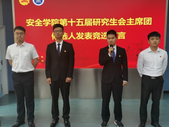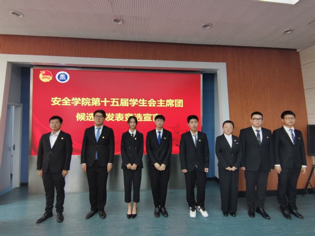 大会在庄严的国歌声中拉开序幕。院团委副书记刘雨浩作大会筹备工作报告。院学生会执行主席袁满作团委、学生会工作报告。接下来,安全学院第十五届学生会主席团候选人上台依次发表竞选宣言。随后,安全学院第十五届研究生会主席团候选人上台依次发表竞选宣言。最后,学生代表进行投票,选举产生了安全学院第十五届学生会主席团和第十五届研究生会主席团。