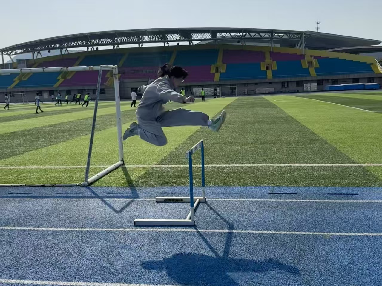 体育部带领参加运动会的同学到第一运动场训练。田径场上,短跑选手在起跑线反复练习爆发力,跨栏运动员腾空而起的弧线划破春日晴空,通过系统性训练逐步调整至最佳状态。与此同时,二运篮球场上,韩国三级
