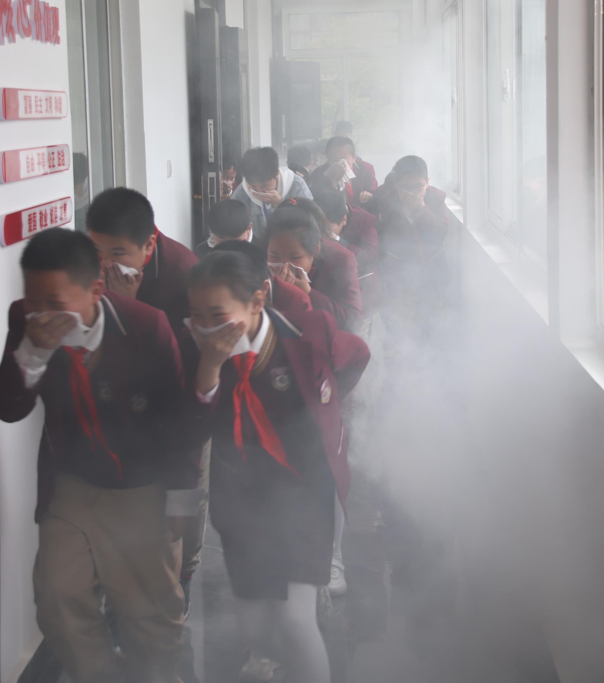 仪式结束后,本次主题活动以“组队闯关”形式进行,由志愿者搭配小朋友进行分组。在分好组后,先进行名字接龙游戏,以加强志愿者和小朋友们之间的认识。活动第一项为“预防儿童拐卖安全教育宣讲”,在宣讲过程中,宣讲人以问答的方式调动小朋友们的积极性,如“坏人拐卖时的惯用招数”“独自一人在家时应该怎么办?”“若陌生人自称是亲戚拉你走应该怎么办?”等。第二项是“寻找生活中的危险”,宣讲人通过幻灯片上的图片提问小朋友们图中有哪些电气危险,小朋友们争先恐后地举手并一一找出了图片中的问题。最后进行了火灾逃生演练,志愿者利用制烟器模拟火灾现场,在大哥哥姐姐们的指挥和陪同下,小朋友们用湿巾捂住口鼻、低头有序进行火灾逃生演练。
