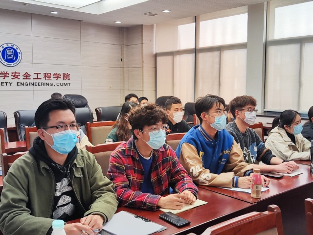 本科生第二党支部于矿业科学中心A412会议室进行集中观看。全国人大代表、徐州市第一人民医院副院长、徐州市眼科医院院长、徐州市眼病防治研究所所长李甦雁教授应邀作报告。校党委书记刘波主持报告会。