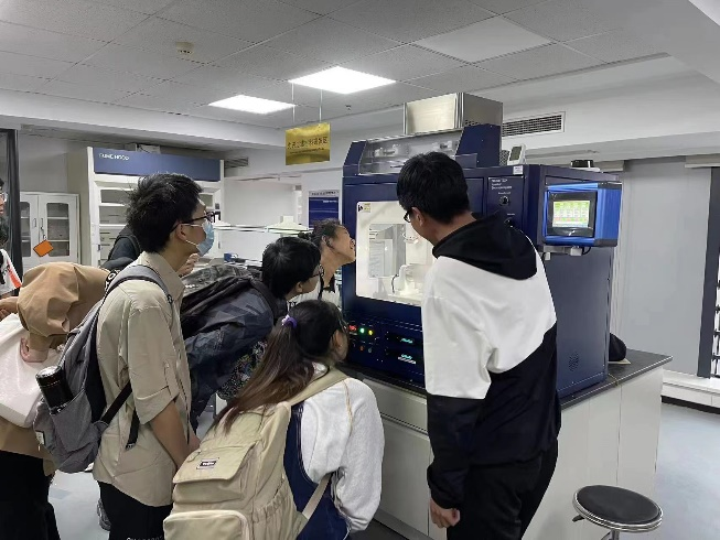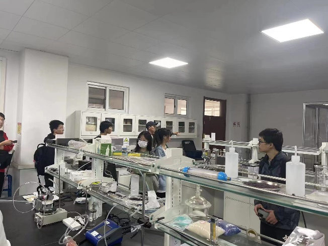活动伊始,任祎博带领大家从历史背景、科研团队、创新发展等方面深入了解了职业健康研究院的发展历程,介绍了研究院旨在打造“职业健康+行业特色”的科研创新与成果转化平台。随后,任祎博带领大家进入实验室参观,同学们近距离观察了职业健康前沿研究有关的各种精密仪器设施,学习了具体的科研成果,切身地感受到了科研的魅力,增强了专业自信。接着,同学们还参观了江苏世安健康科技研究院有限公司,任祎博为大家讲解了部分静电纺丝与测定煤尘理化性质的仪器,重点介绍了检测气溶胶颗粒物模拟器、呼吸模拟器、煤尘发生器等检测口罩及呼吸器的仪器。活动最后,任祎博带领同学们参观了通风模拟实验室。