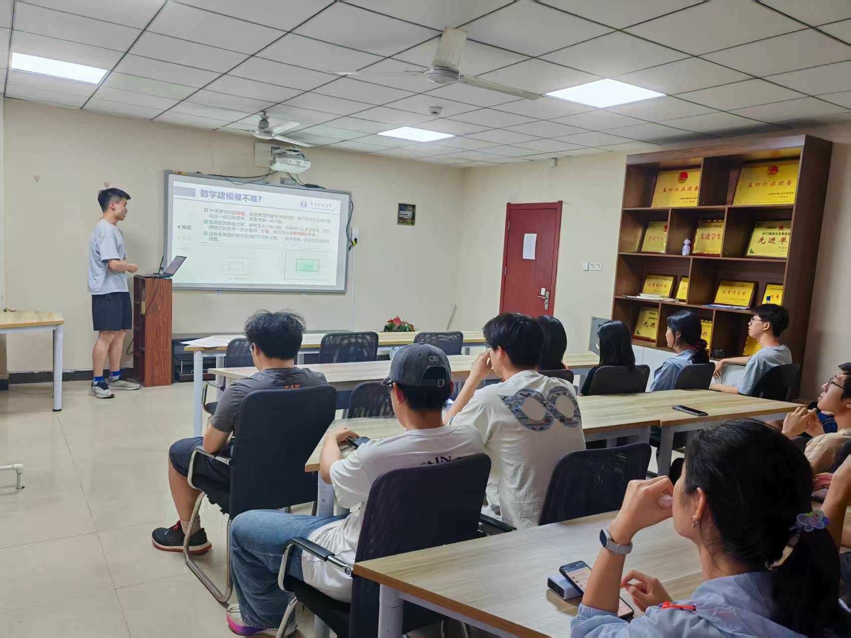 活动伊始,王坤结合自身入党的心路历程,向大家分享了作为一名预备党员对科研活动的看法以及如何利用先进思想指导自己在科研之路上前行。赵鑫结合数学建模竞赛国家级奖项经验,以“科研入门与竞赛突围”为主题展开分享。他通过“五一建模”“全国赛”等案例,解析数学建模核心步骤:“选题分析→模型构建→算法编程→论文撰写”,为同学们精炼了参赛进程。