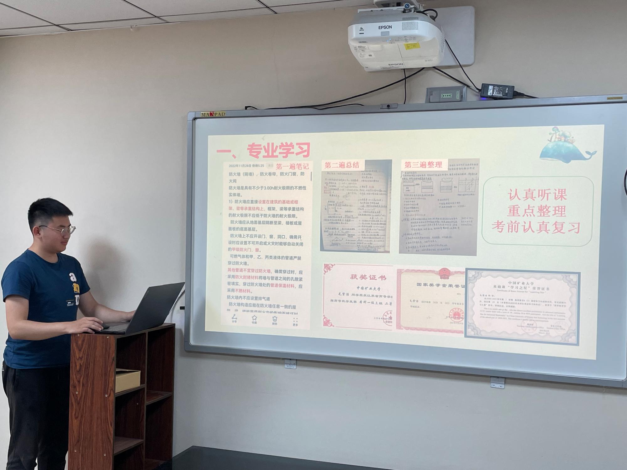 活动伊始,毛紫浩同学以“踏实做事,为国栋梁”为主题展开分享。毛紫浩结合自身经历,从专业学习、科创竞赛、身体健康这三个方面详细而又风趣地讲述了自己的大学生活,并从中总结出宝贵的经验供同学们参考。他不仅提到了专业课学习的相关方法,还列举自身的科创竞赛经历鼓励同学们积极参加科研,并叮嘱同学们在紧张的学习工作中也不要忽略自己的身体健康,鼓励同学们在生活中保持健康快乐的生活节奏。随后,杨腾锐同学结合自身的社会实践项目展开介绍。杨腾锐详细介绍了社会实践的各个开展的工作,并在介绍过程中以自身经历经验为依据,为同学们提出了中肯实用的建议。他用自己的实际行动告诉同学们:社会实践不是完成任务,是实现个人价值的精神所向,每一个参与社会实践的同学都应不忘初心牢记使命。最后,活动在同学们的掌声圆满结束。