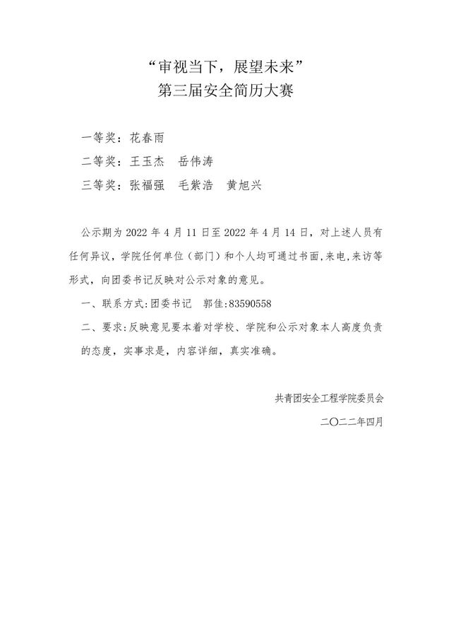 团委学生会、研究生会于3月15日举办了第三届安全简历大赛。