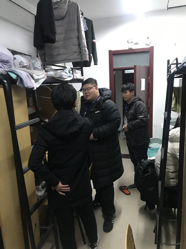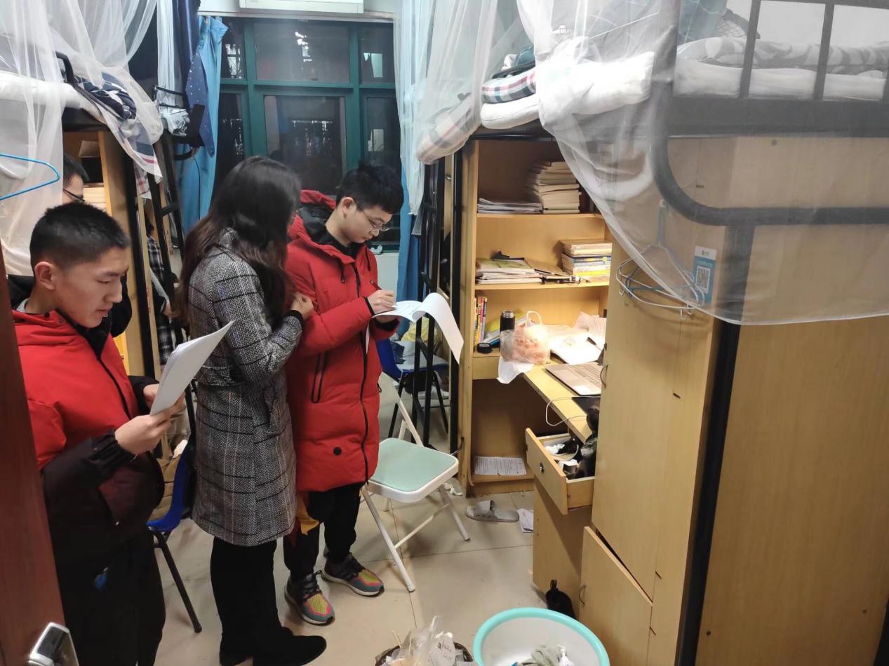 为做好学生宿舍安全管理工作,消除安全隐患,营造良好的宿舍生活氛围,月3日晚,梅苑分党工委安全学院工作组开展安全大检查。安全学院学工办主任于基伯,院团委书记刘世通,辅导员排日代姆、吕鑫、王蓉、莫达及梅苑分党工委安全学院工作组学生骨干和志愿者们对梅一B区、梅三B区进行了全面检查。