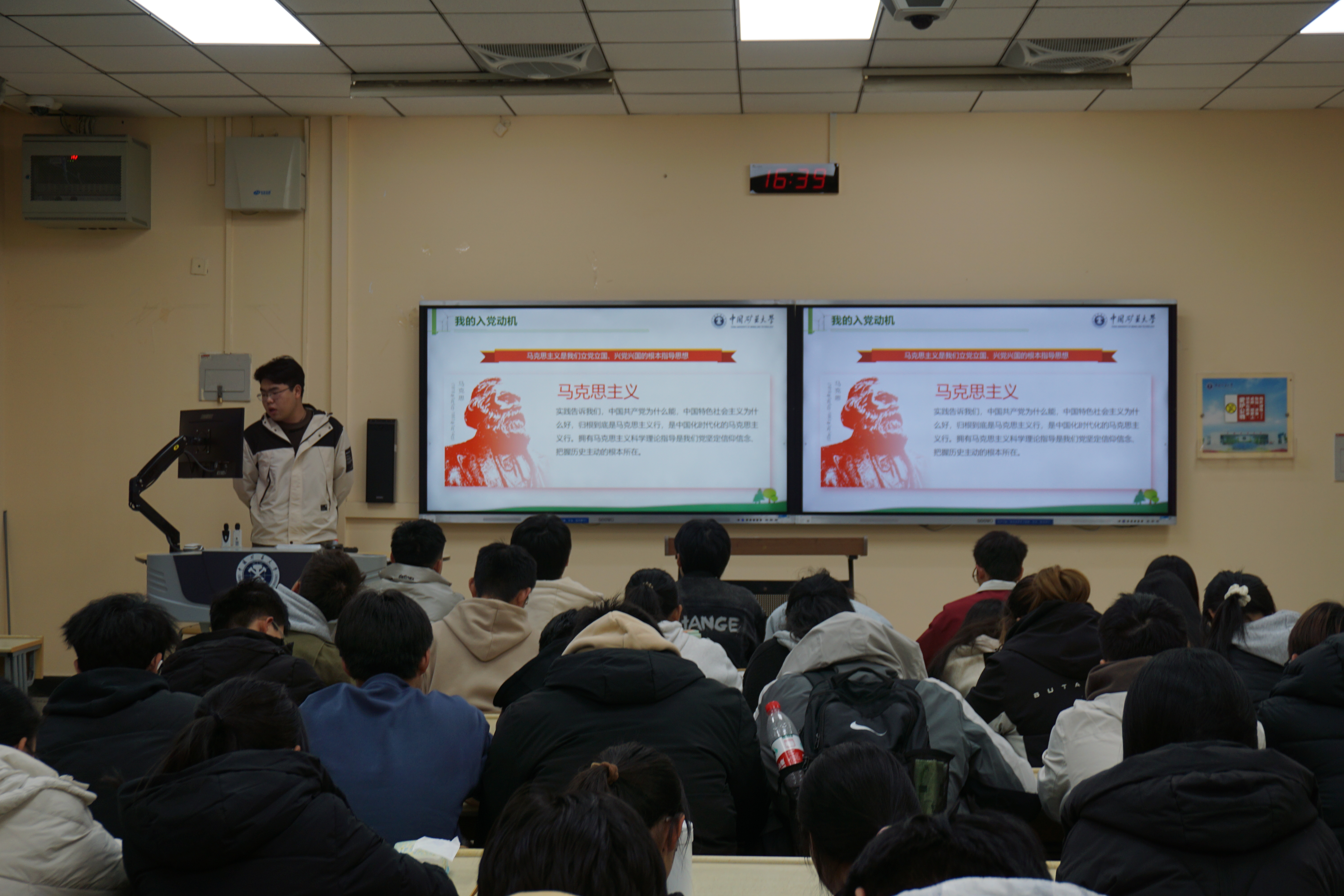 活动伊始,俞嘉濠结合自己在学习成绩、学生工作、科创竞赛三个方面的经历,鼓励同学们要争做新时代奋斗者。李孟阳和李志仁讲述了大学期间可以在课余时间习得的技能以及自己如何以奋斗的姿态激扬青春,鼓励同学们要不惧困难、勇往直前。黄旭兴和王鑫以青年党员的责任与使命为中心,表示当代青年党员应坚守初心使命,不断提升自己的党性修养,积极投身党和人民的伟大事业。杨腾锐同学分享了自己在学校、学院、班级的工作历程,表示自己将继续履行学生党员工作者的责任与使命。