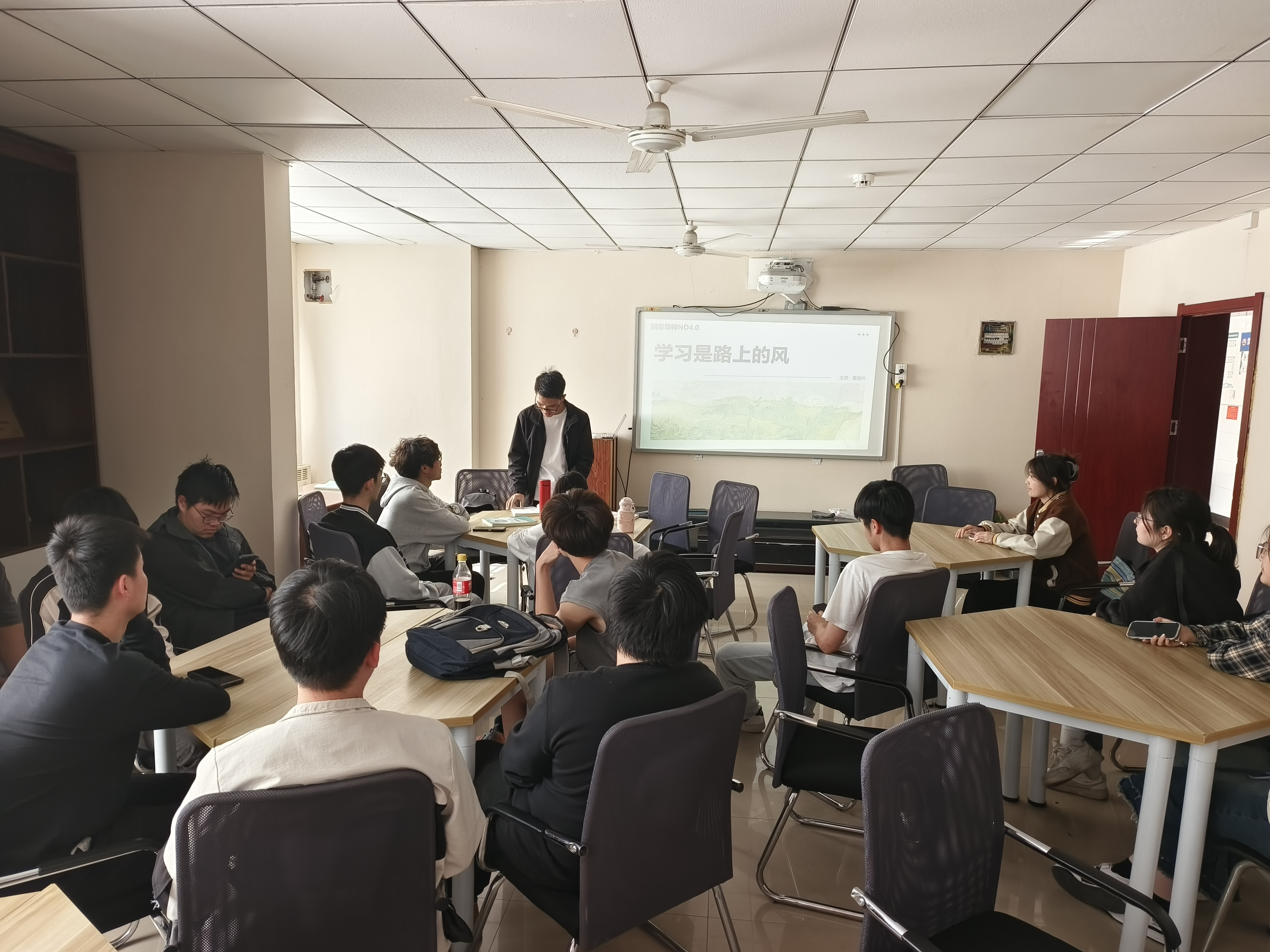 活动伊始,黄旭兴结合自身课程学习对《环境工程概论》和《职业卫生医学基础》两门专业课程的重点难点进行了讲解。他详细介绍了各类题型的解题技巧,还分享了自己的学习笔记和优质资料,帮助同学们更有效地复习。活动过程中黄学长设计了问答互动环节,现场检验班级同学的知识储备,以便同学们理解学科难度及考察角度。此外,他还鼓励同学们积极提问学习、生活相关问题,现场解答疑惑,活动氛围活跃而高效。