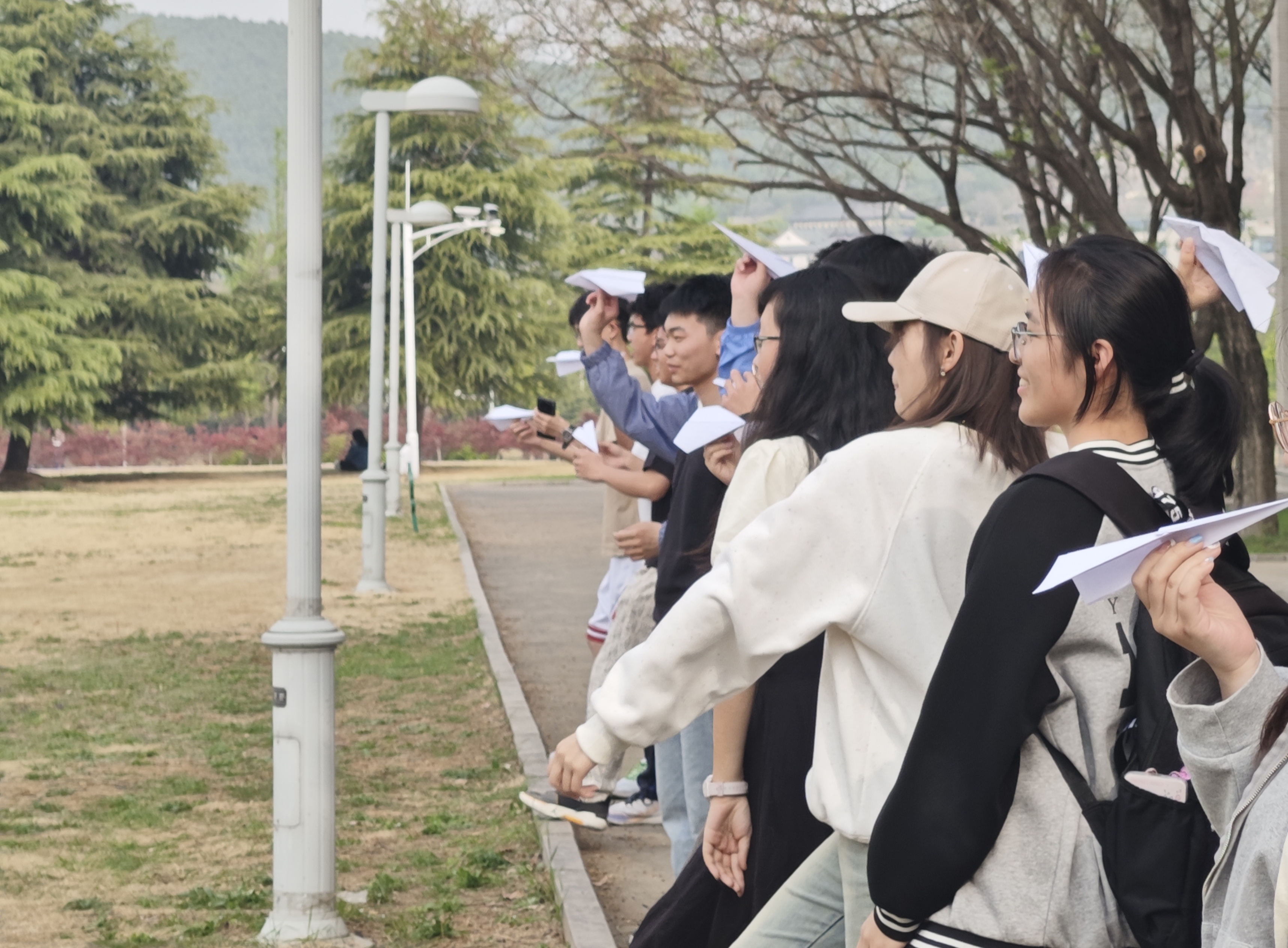 心理自助中心主办,以“焦虑转化”为核心逻辑,通过“愿望构建-具体外化-希望传递”三阶干预,引导同学们将无形压力转化为可操作、可感知的积极行动。活动包含三个环节:未来画布行动、焦虑放飞计划和春日心灵转运站。在未来画布行动环节,同学们绘制“未来的自己”,展现心中未来生活的场景,交流对美好生活的畅想;在焦虑放飞计划环节,同学们在彩色A4纸上匿名写下近期最困扰的学业或生活压力,折成纸飞机进行投掷比赛;春日心灵转运站环节,同学们收获绿植,抽取鼓励卡,互相传递正能量。