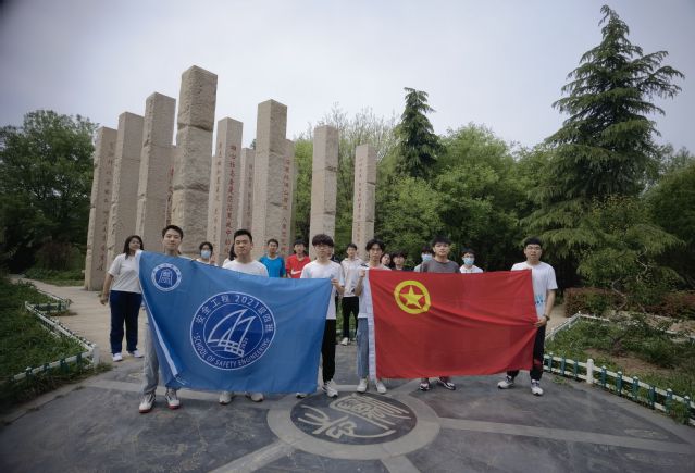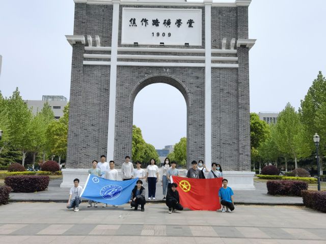 最后,同学们来到思源广场,回首矿大百余年历史,在蔡元培、华罗庚以及孙越崎先生的人物塑像面前肃然起敬。时间之河川流不息,每一代人都有自己的际遇和机缘,都要在自己所处的时代条件下谋划人生、创造历史。驻足焦作路矿学堂门前,班长杨腾锐发出倡议:在建团一百周年之际,作为新时代的矿大青年,我们要勇敢肩负起时代赋予的重任,志存高远,脚踏实地,努力在实现中华民族伟大复兴的中国梦的生动实践中放飞青春梦想。
