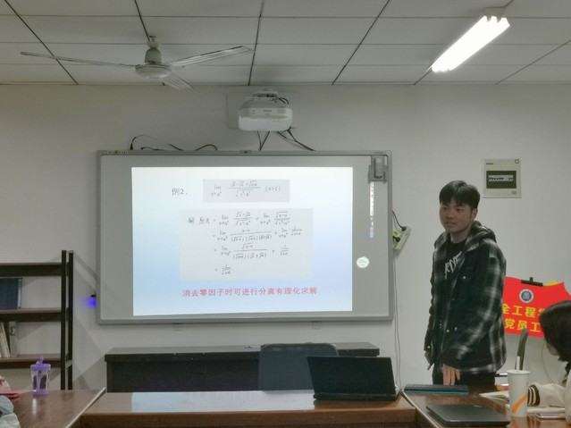 符亮亮、毛紫浩两位同学细致地梳理了高数A1、A2的知识点,并在每个知识点后附上了例题来加深同学们对于知识运用理解。对于如何在补考时灵活应对的问题,符亮亮同学给出的回答是,只有反复研究近十年的考试真题,对于题型烂熟于心,才能在考试时对知识点做到收放自如。辅导员陈劲松建议同学们抓住每一个细小的知识点,争取基础题一分都不丢。最后,符亮亮、毛紫浩同学同大家分享了他们在复习时的思路、技巧和整理的重难点题型,还在一些经典例题上邀请同学一起来分享思路。在同学们的掌声中,本次学霸课堂落下了帷幕。