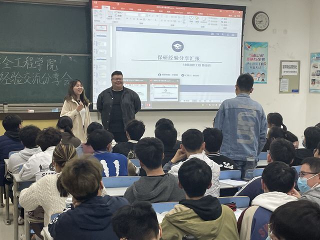 为进一步帮助2019级学生了解保研内容,做好保研计划以提高保研竞争优势。3月10日,安全学院于博一C102组织开展保研经验交流分享会。此次活动由研究生会邀请2018级袁满、刘晓琴、鲁佳明三名同学分享他们的保研经历。学工办主任刘世通、2019级兼职辅导员孙林林以及各年级有意向保研的同学参与了本次活动。