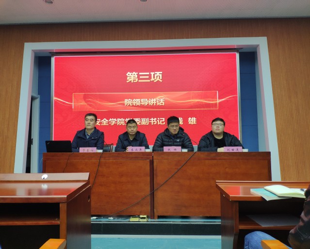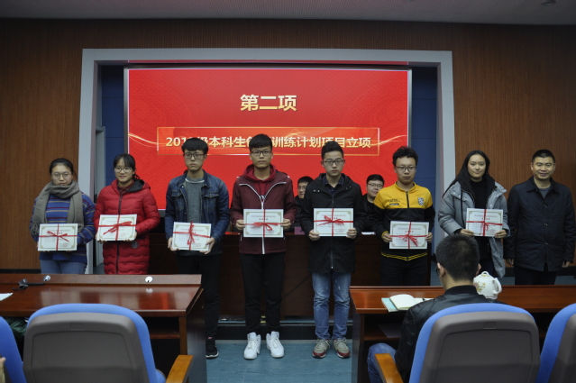 安全学院副院长秦波涛教授代表学院为项目负责人代表颁发立项证书,并与他们合影留念。学院党委副书记钱雄代表学院党委讲话,他指出大学生创新训练项目旨在培养本科生的创新创造思维,提高本科生将理论与实际相结合的能力,鼓励同学们更加积极地投入训练项目。