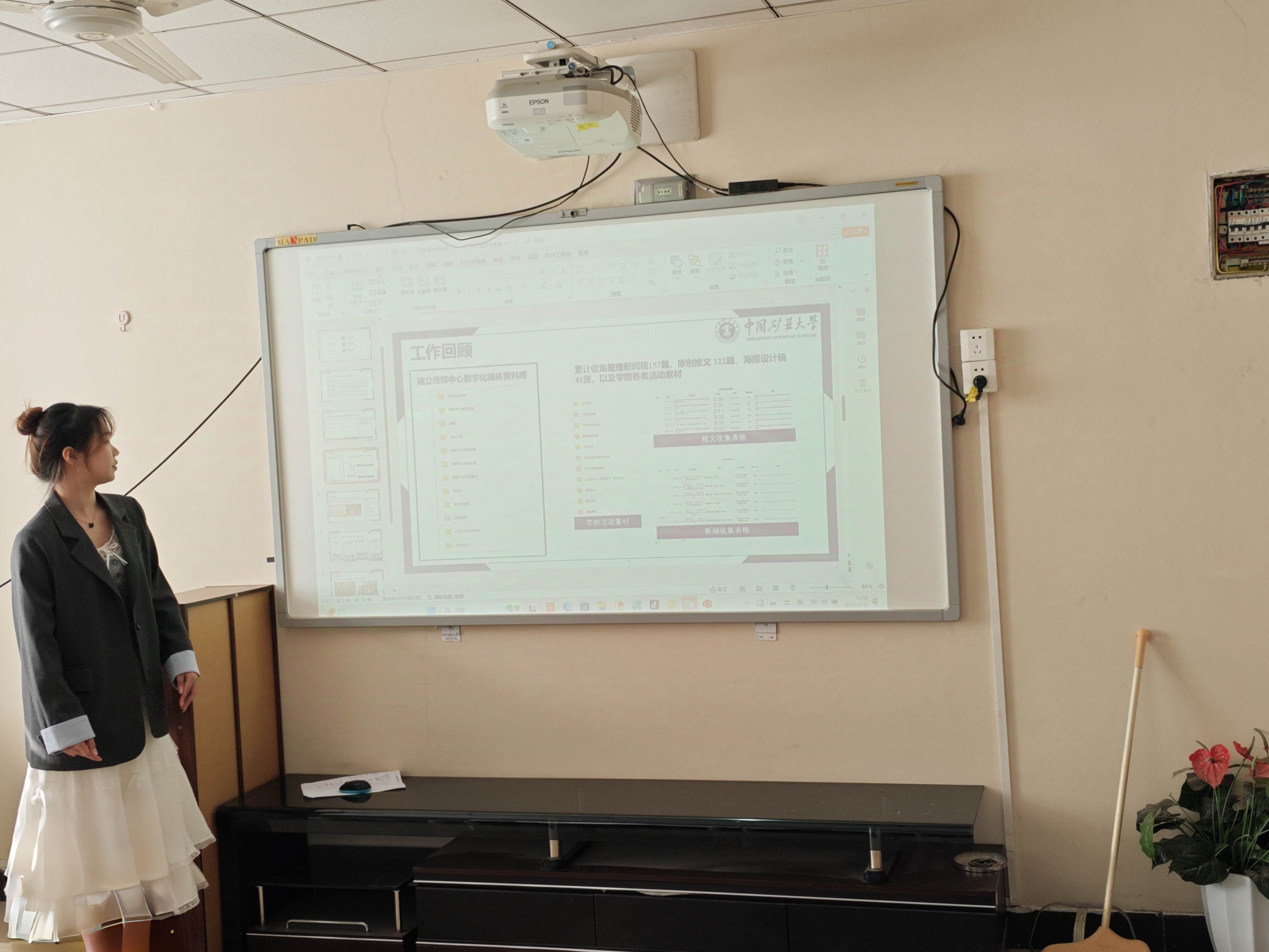 活动期间,各部门部长依次上台,以精心准备的PPT为辅助,围绕过去一年工作成果、存在问题及改进措施,还有未来工作计划展开阐述。 在提问环节,郭佳和赵厚宽老师积极提问,所提问内容涵盖活动策划过程使用、部门协作效率等多个方面。答辩者从容应答,结合实际工作给出合理解决方案,展现出良好的应变能力与工作思考深度。活动最后,郭佳老师对本次答辩会进行了总结发言。她首先充分肯定了各部门在过去一年中取得的显著成绩,高度赞扬了大家在各自岗位上的辛勤付出和不懈努力。同时,她也鼓励全体成员在未来的工作中继续保持优良作风,充分发挥各自的优势,进一步提升工作效率与创新能力,为校园文化的丰富建设以及学生的全面发展贡献更多的力量。