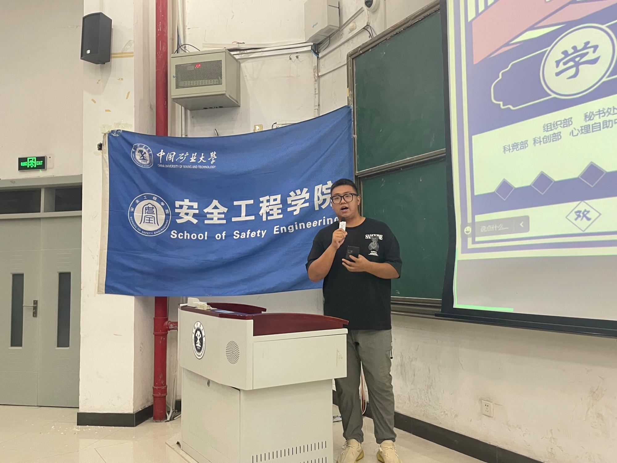 宣讲会伊始,团委学生副书记张浩楠为同学们介绍了团委学生会的分支部门,强调了团委学生会是安全学院是学生工作的主要力量,在学院内发挥重要作用。接着,各部门按照抽签顺序依次上台宣讲。为了让同学们更好地了解各个部门的详细职能,激发兴趣,部长团精心制作了招新PPT与视频,向同学们详细介绍了部门成员、工作内容等。最后,学生会主席顾珮馨为全体同学解读最新颁布的评奖评优条例,耐心解答了大家的问题。