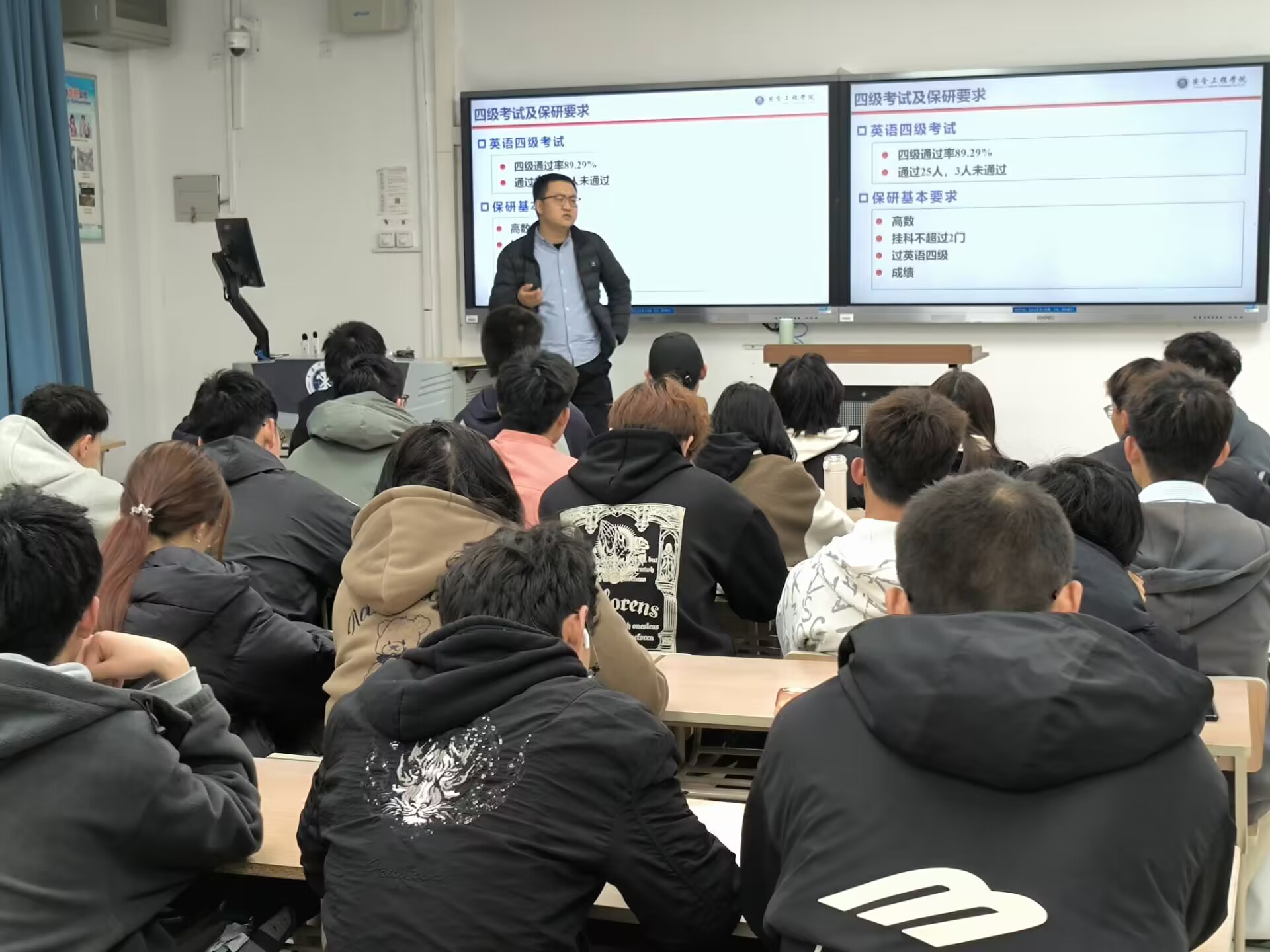 于博学楼五号楼A108开展“总结经验,探寻方向”主题讲座。李楠教授受邀主讲,2023级五班行政班主任周昆及全体同学参与讲座。