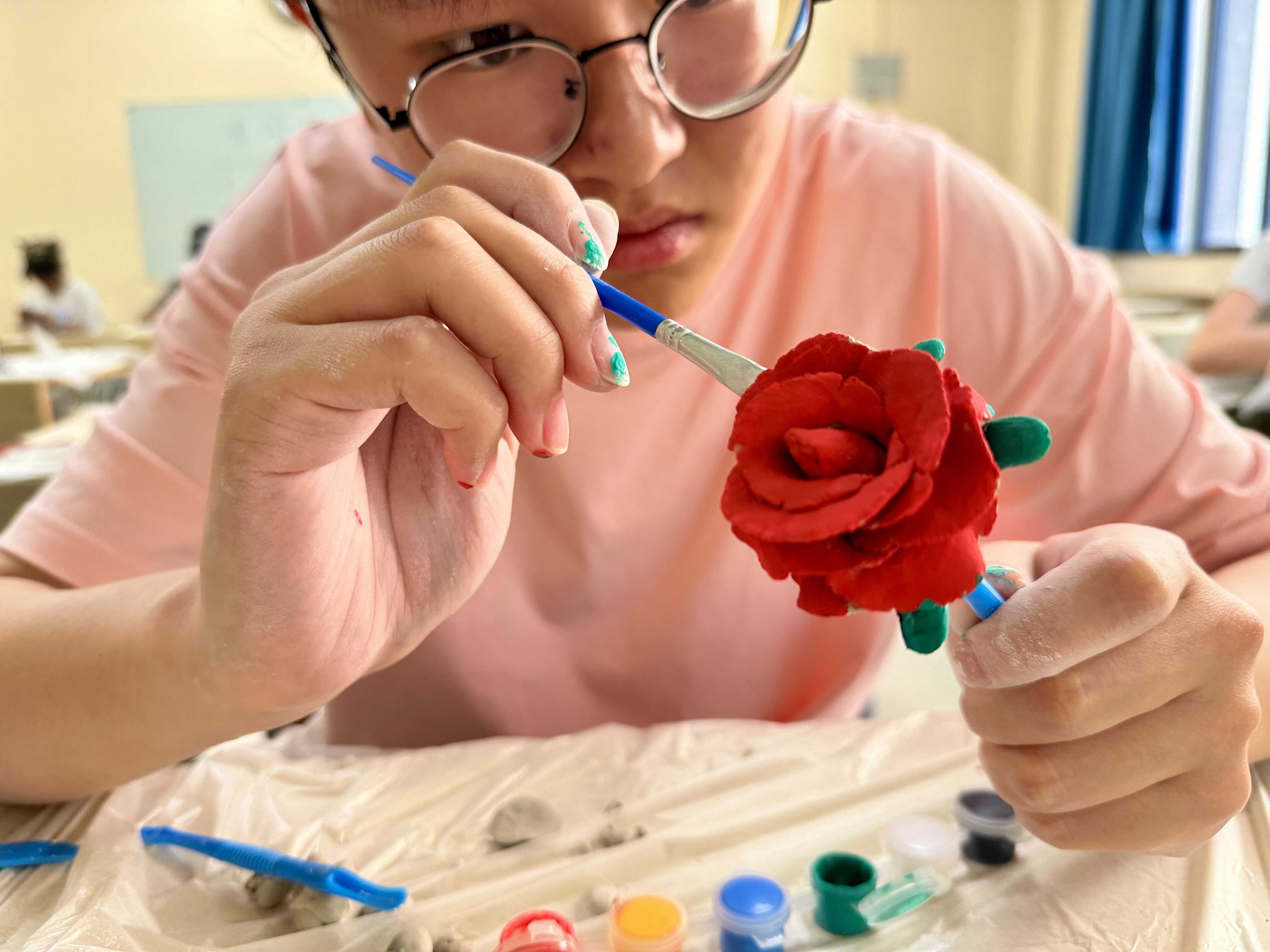 本次活动以歌颂母爱为主题。活动过程中,同学们在现场即兴创作,经过塑型,晾干,上色三步,制作出一个个活灵活现的泥塑。参加活动的同学们思如泉涌,有为母亲精心制作的营养早餐,有送给母亲的鲜艳花朵,也有对亲情生活的重现。活动结束后,评委们综合选手作品的颜色、创新、寓意、外观等方面进行打分,评选出一、二、三等奖,并对同学们的优秀作品进行展出。