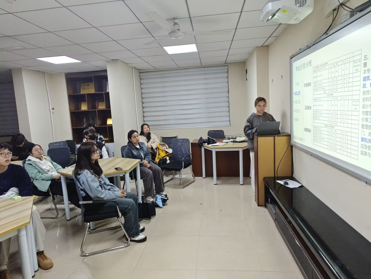 学生党员工作站于行健书院五楼力行轩开展“朋辈分享志,前行引航灯”为主题的讲座,朋辈导师高雯静主讲,2024级安全科学与工程类8班全体同学参会。
