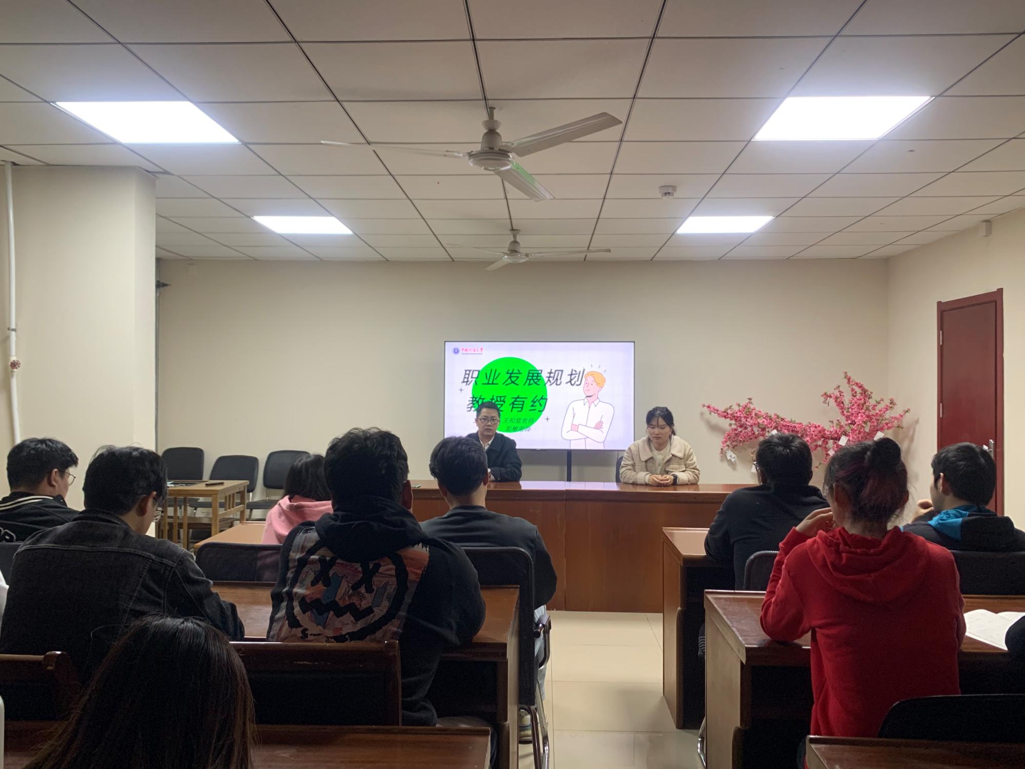 活动伊始,王和堂教授明确了职业生涯规划的重要性,并为同学们日后职业规划指出几种不同的方向。王教授结合自身经历强调做职业规划首先应当对自我做深入分析,了解自身特点,思考好道路方向后再展开具体工作。随后王教授还鼓励同学们增强未来发展的目的性和计划性,用理想信念支撑自己前进,不能一味追求“躺平”。接着,彭敏老师指出提高自身核心竞争力的重要性。她表示,实力才是硬道理,同学们应当珍惜时光,努力学习提升自我,把握时间的重要性,鼓励大家抓住机会,不惧尝试。活动最后,王和堂教授针对同学们提出的各种问题细致耐心的解答。