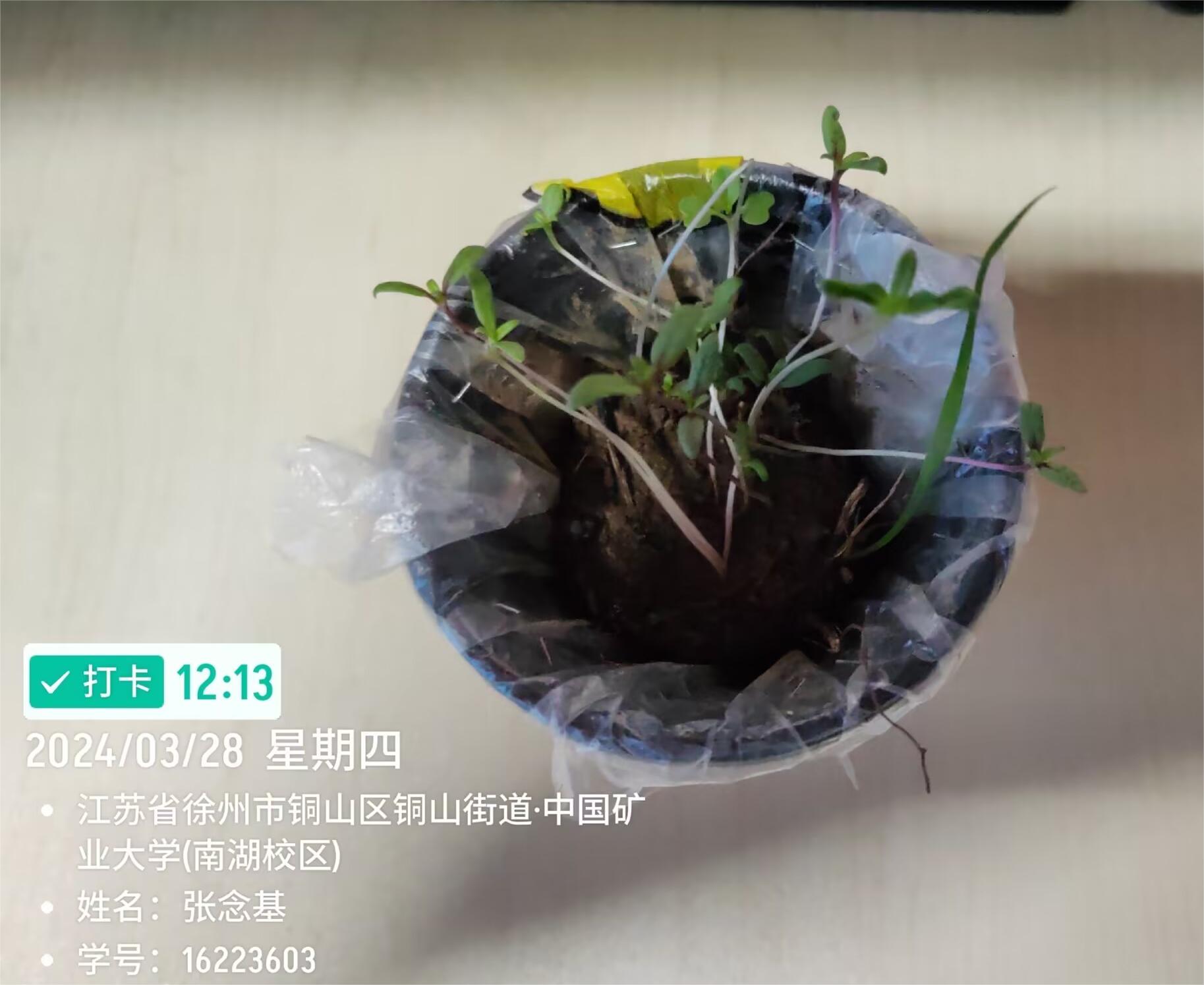 活动前,团学、各班宣传委员积极宣传,张贴海报,同学们踊跃参与,宣传与实际行动相结合;活动中,先由专门的同学向报名学生发放种子,花盆与营养土,随后在QQ群里建立相册并每日拍照打卡,拍照内容为当前种子生长情况。在同学们的悉心呵护下,种子茁壮成长,破土而出,富有独属春天的生机与活力。活动后同学们也为自己的劳动成果感到喜悦,收获了劳动后的满足感、成就感。