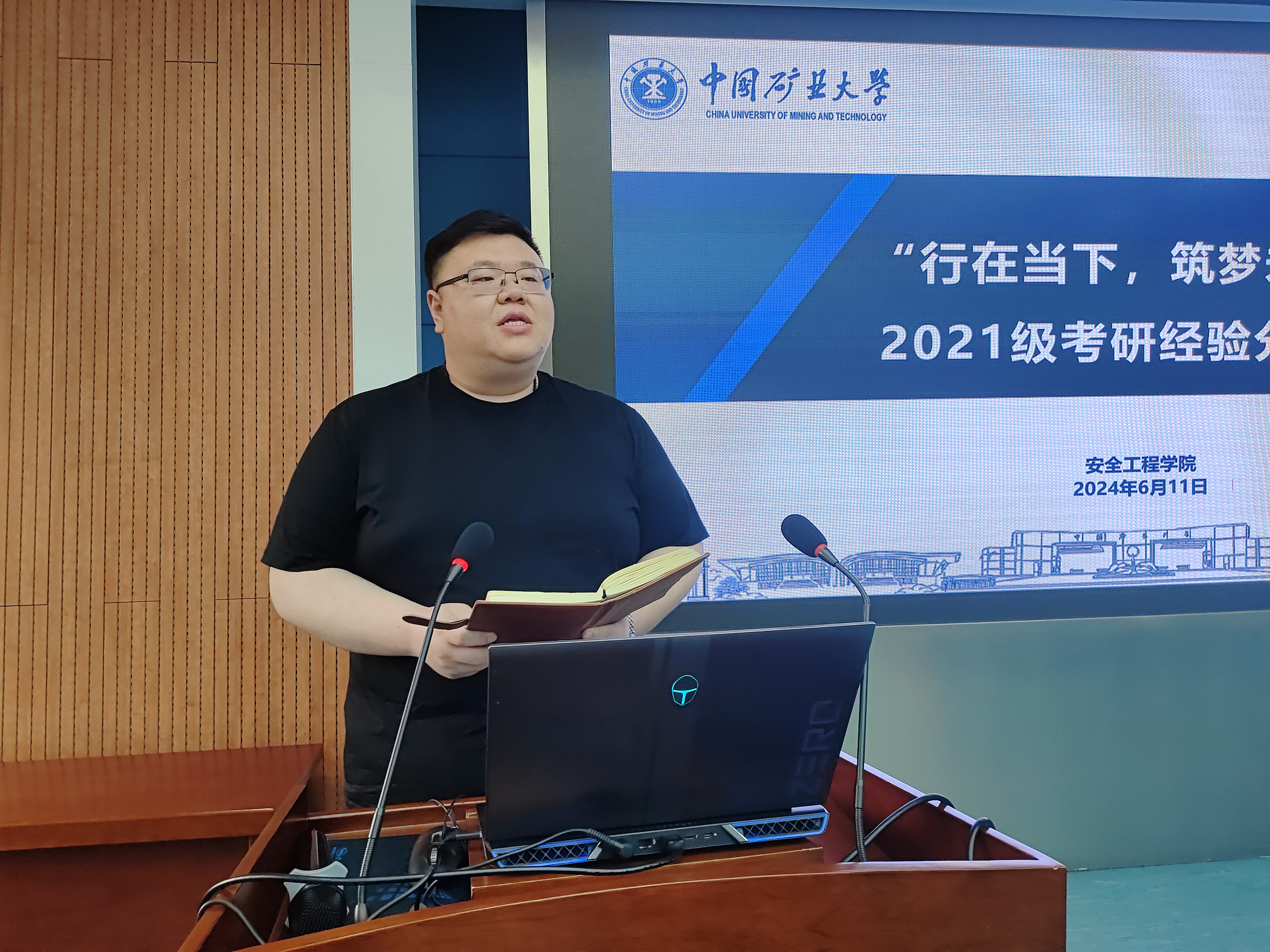 于矿科楼A200举行“行在当下,筑梦未来”2021级考研经验分享会。本科2020级考研成绩优异学生代表受邀主讲。学工办主任、2021级辅导员刘世通、2020级辅导员胥振以及韩国三级