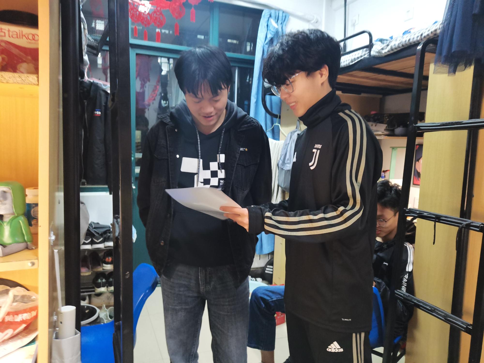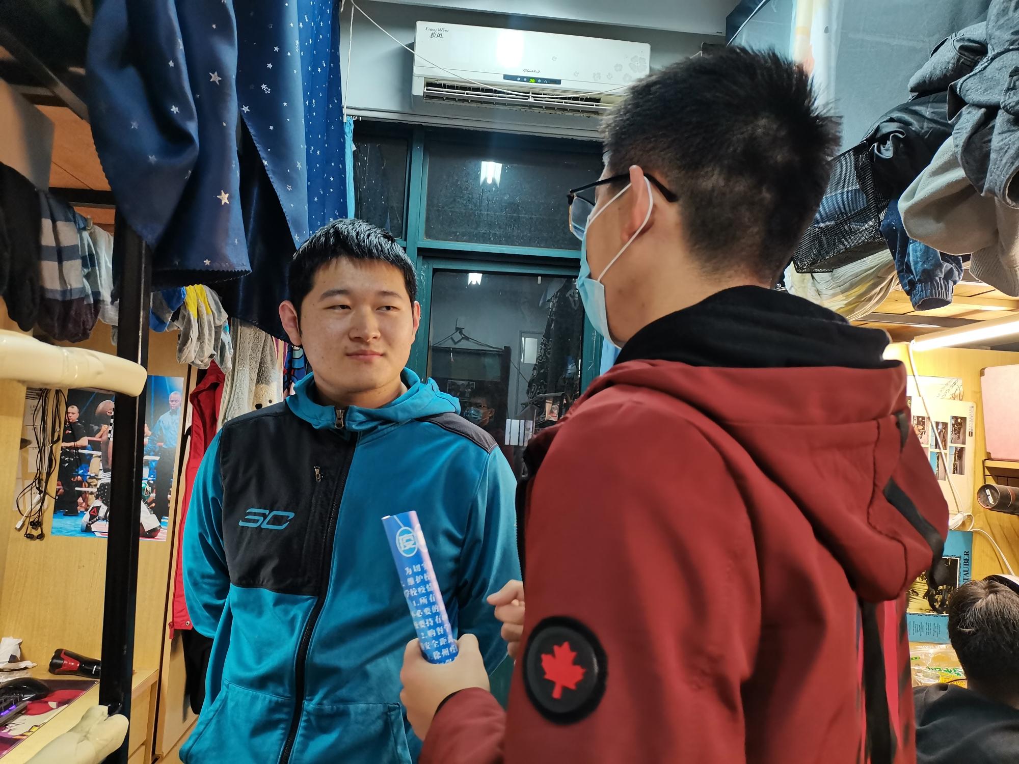 走访过程中,学生党员们在每间宿舍内醒目位置张贴携带“防疫小贴士”宣传海报,时刻提醒同学们注意疫情防控。各位党员与包干宿舍同学们亲切交流,面对面了解他们最近及几周学习和思想、生活情况。包干党员特别提醒各位同学:当前徐州疫情防控形势依旧复杂,存在较大的不确定性,同学们要严格遵守学校的疫情防控管理要求,按时进行核酸检测,在教室、图书馆、快递站等场所要佩戴口罩,主动做好个人防护;建议同学们可以设置闹钟,按时完成每天的健康打卡和晚点名,携手抗疫。在走访同时,学生党员们也对分管宿舍的卫生进行了检查,指出了一些问题要求同学们改善,防止供暖后室内温度升高导致病菌滋生。