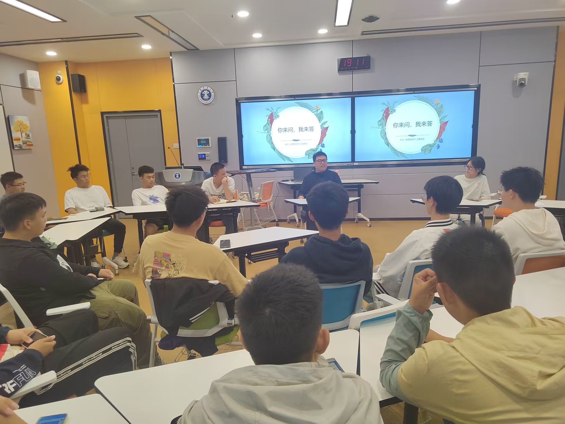 讲座伊始,刘清泉教授结合自身成长经历,对专业研究方向、专业学习内容、大学生涯规划、未来就业等方面展开讲解,帮助同学们对专业发展有了更加全面、深入的了解。刘教授鼓励新生要尽快适应大学生活,转变自身的角色,找到适合大学阶段的学习方法,其次要注重基础课程的学习,为后来专业课的学习奠定扎实的基础,最后希望班级同学可以在大学生活中不断发现自我,成长自我,实现自我。他鼓励同学们在积极参与各项活动的过程中发掘自己的特长与兴趣,并将二者相结合实现个人能力的提高,在毕业时达成实现自我的目标。
