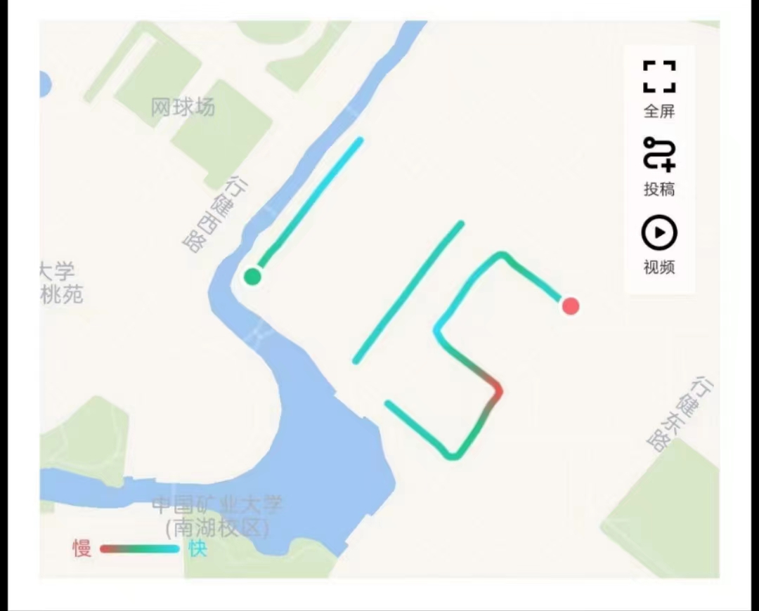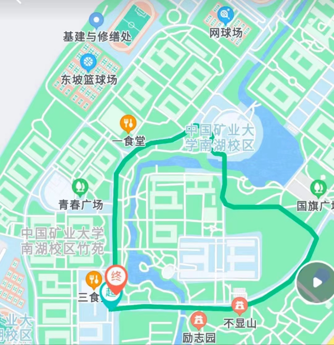 学生在校园内跑步锻炼,并打开跑步软件进行轨迹记录,以跑步轨迹来纪念矿大115年校庆。跑步轨迹分为两种,第一种为绕教学区的心形轨迹一圈,第二种是在数学学院附近教学区完成115形式的轨迹。韩国三级