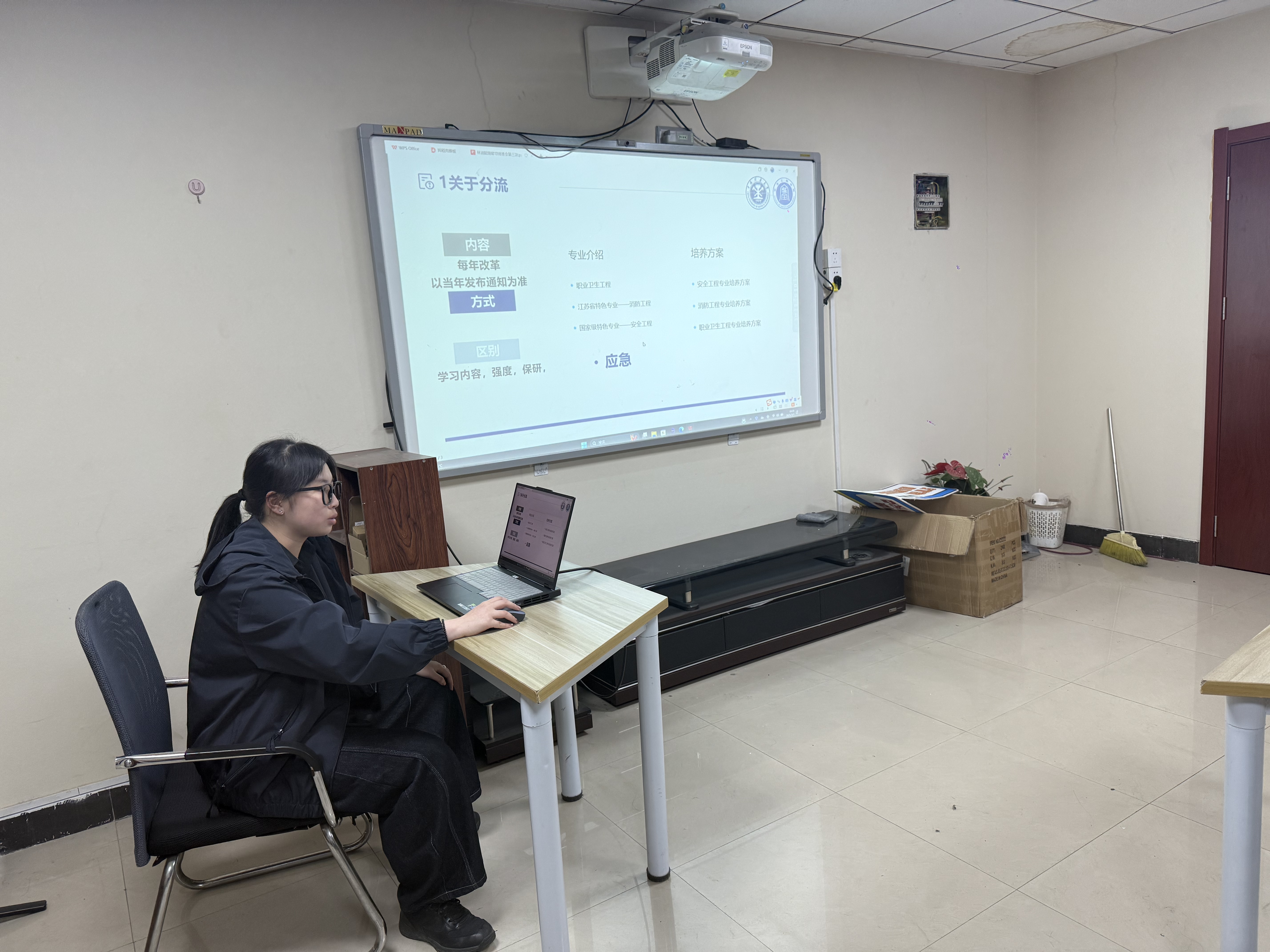 讲座伊始,林涵懿凭借自身丰富的学习和实践经验,为同学们深入解读安全科学与工程专业下设的分流方向,包括安全工程、消防工程、职业卫生工程、应急技术与管理,详细介绍各方向的课程设置、就业前景以及发展趋势。同时,林涵懿针对同学们在分流选择中产生的困惑,如自身兴趣与专业方向的匹配、未来职业规划等问题,进行耐心解答。