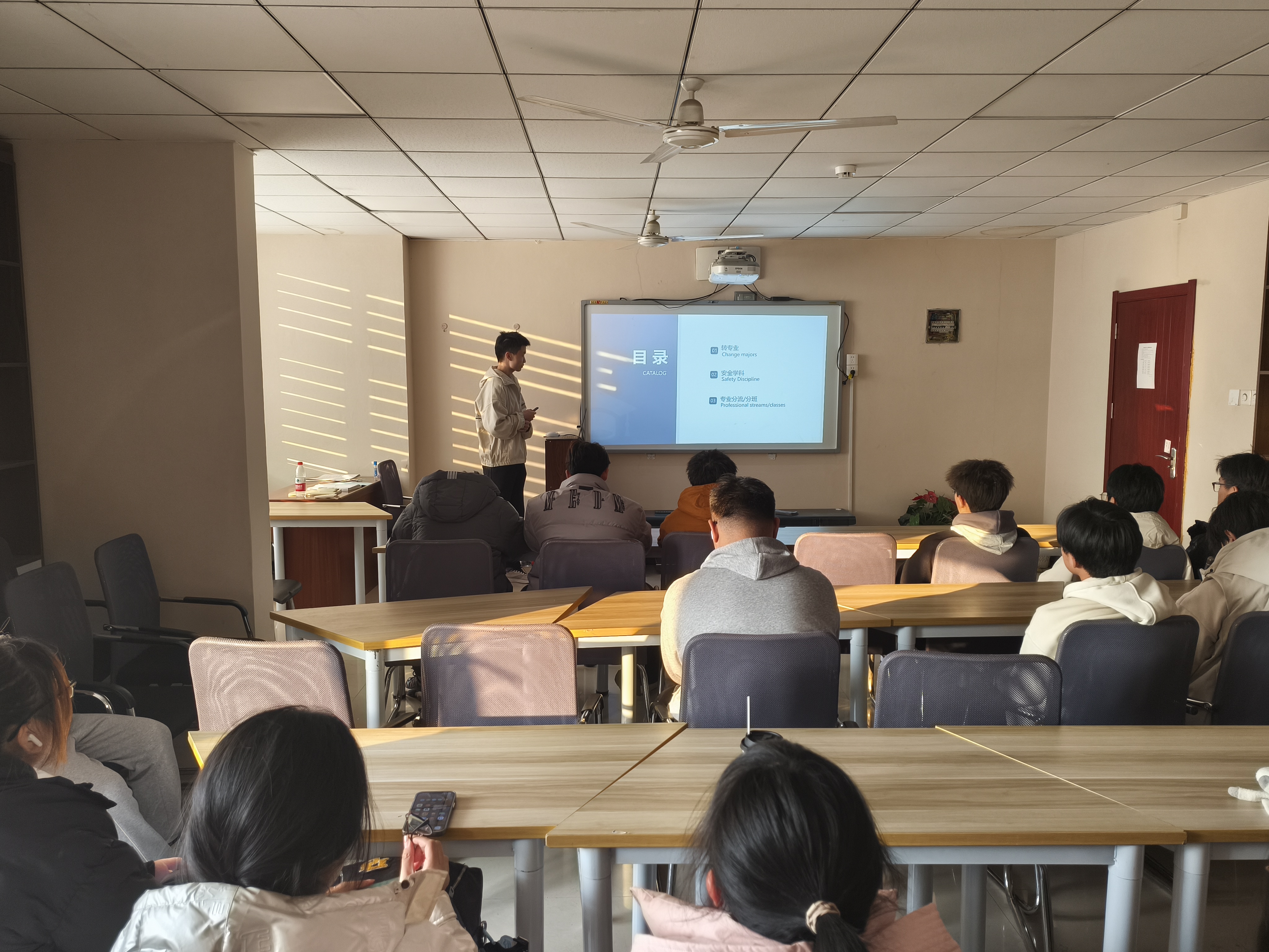 活动伊始,赵鑫细致讲解了安全学科的历史,希望同学们能够正确认识安全学科,在大学的学习过程中不断深入对安全专业的认知,强化自身安全责任担当,接着赵鑫分享了自己的学习经验,鼓励大一学生夯实专业基础,尽快适应大学的学习节奏,不断提升自己的学习能力。最后,赵鑫谈到了专业分流分班的问题,并为同学们的困惑耐心解答。