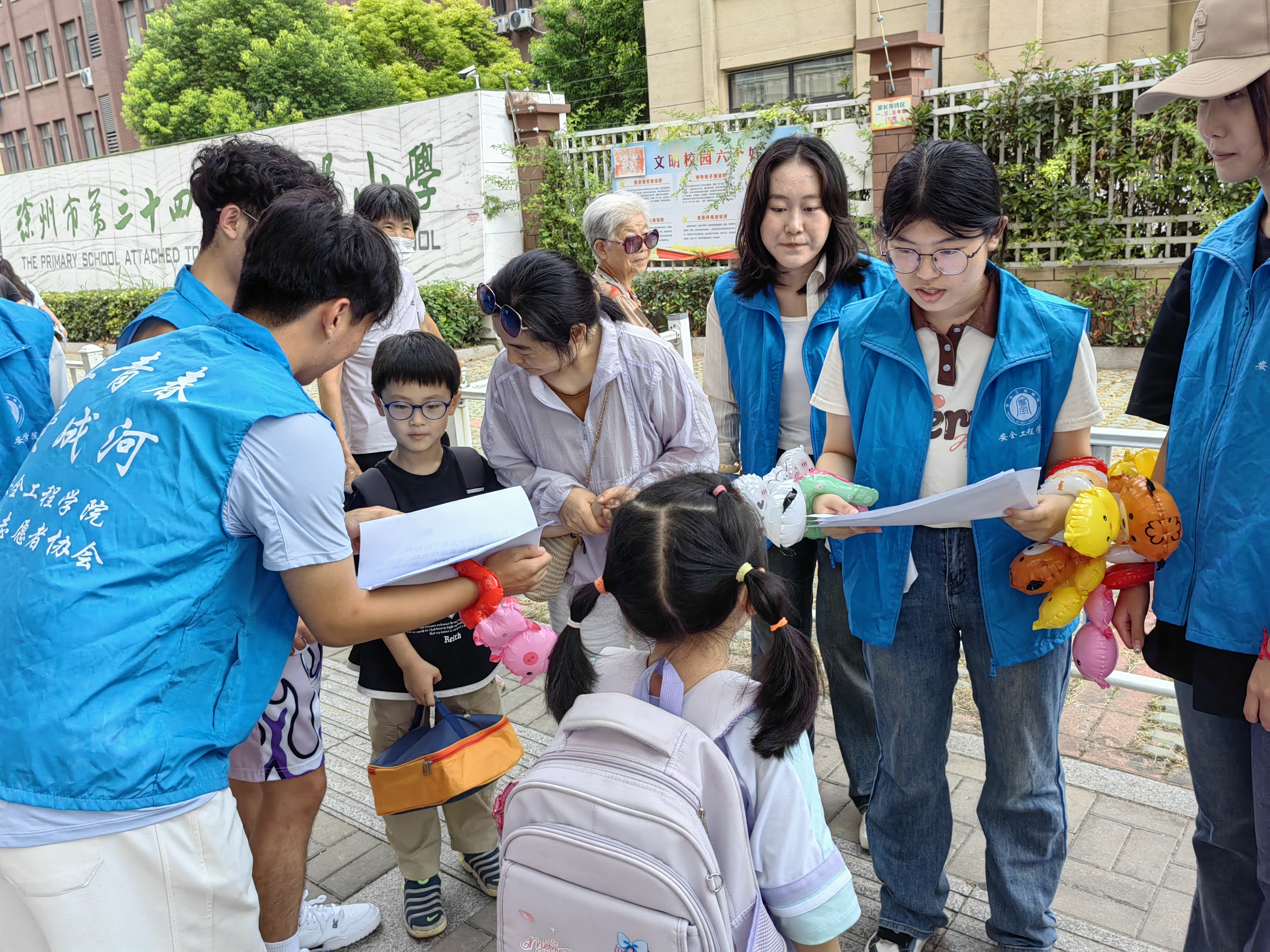 活动开始,志愿者前往徐州市第三十四中学附属小学进行宣传。活动采取问答有奖的方式,对小学生提出关于网络安全的问题,并赠送奖励,志愿者与学生积极互动。不仅能吸引学生们的兴趣,而且能加强个人安全信息保障。随后,志愿者前往附近居民小区进行宣传,旨在将网络安全相关知识深入到家家户户。对于学生与居民提出的生活中的网络安全问题,志愿者给出了具体解答。