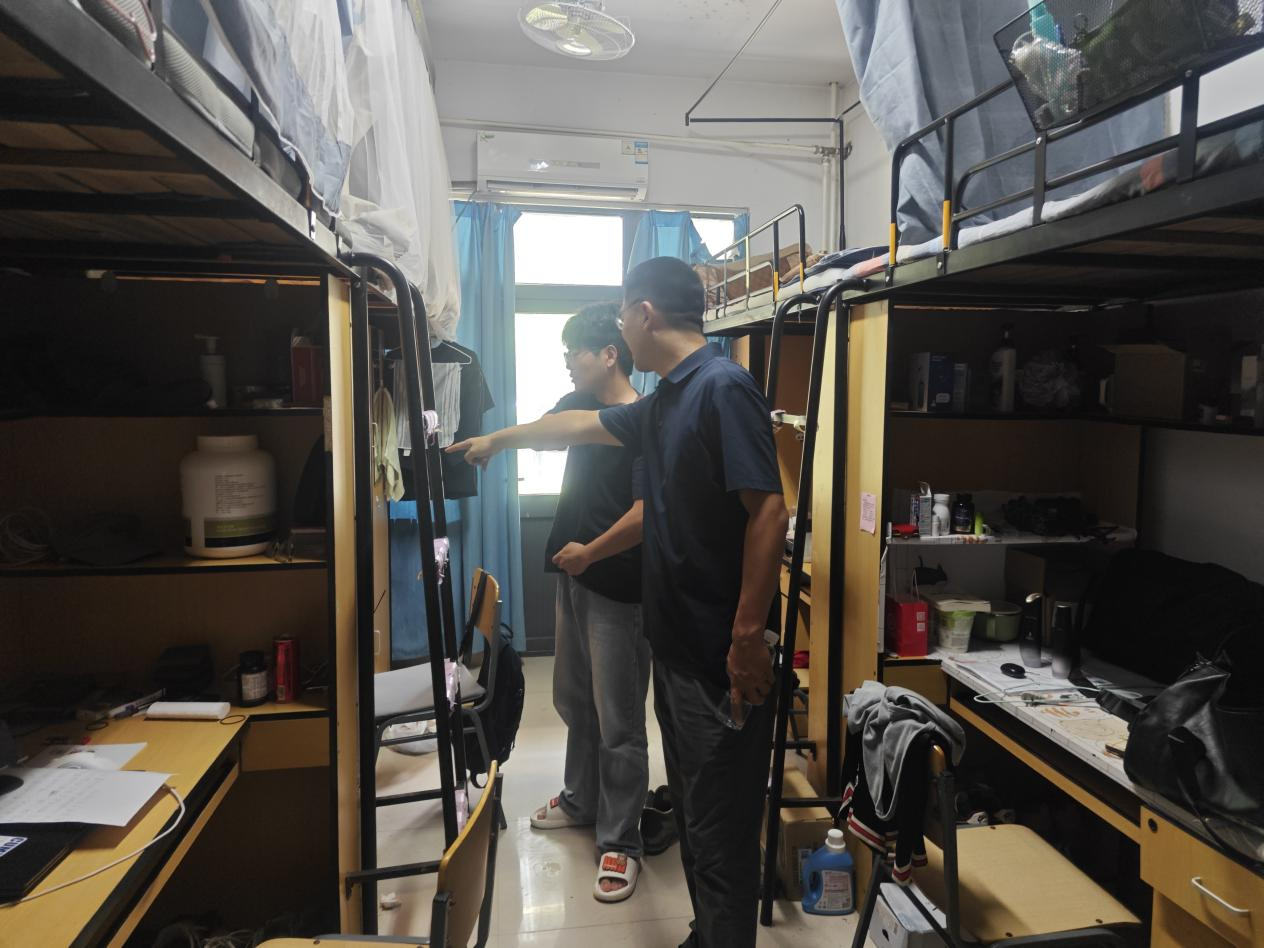 各年专兼职辅导员深入对应年级本科生宿舍与兰苑三号楼研究生宿舍逐一进行检查,重点聚焦水电线路安全、物品堆放是否规范等内容。检查结束后,工作人员在无学生留宿的宿舍门外张贴暑期安全封条;对于申请暑期留校的学生,检查组进行面对面叮嘱,重申学校相关管理规定,重点强调用电安全、防火防盗、外出报备等要求,提醒其务必遵守学校假期管理规定,注意假期安全。